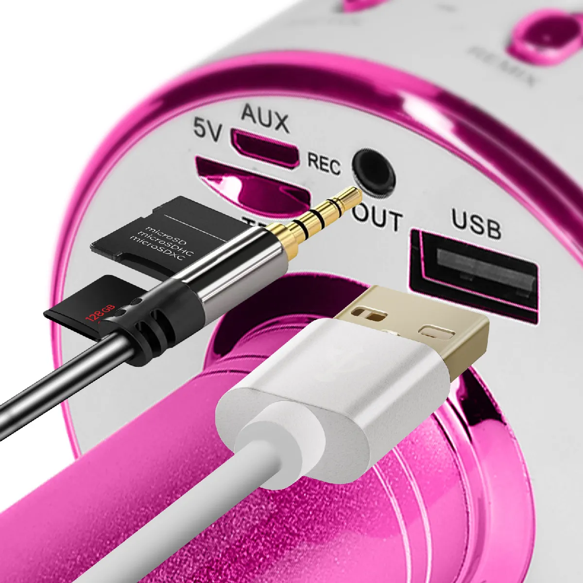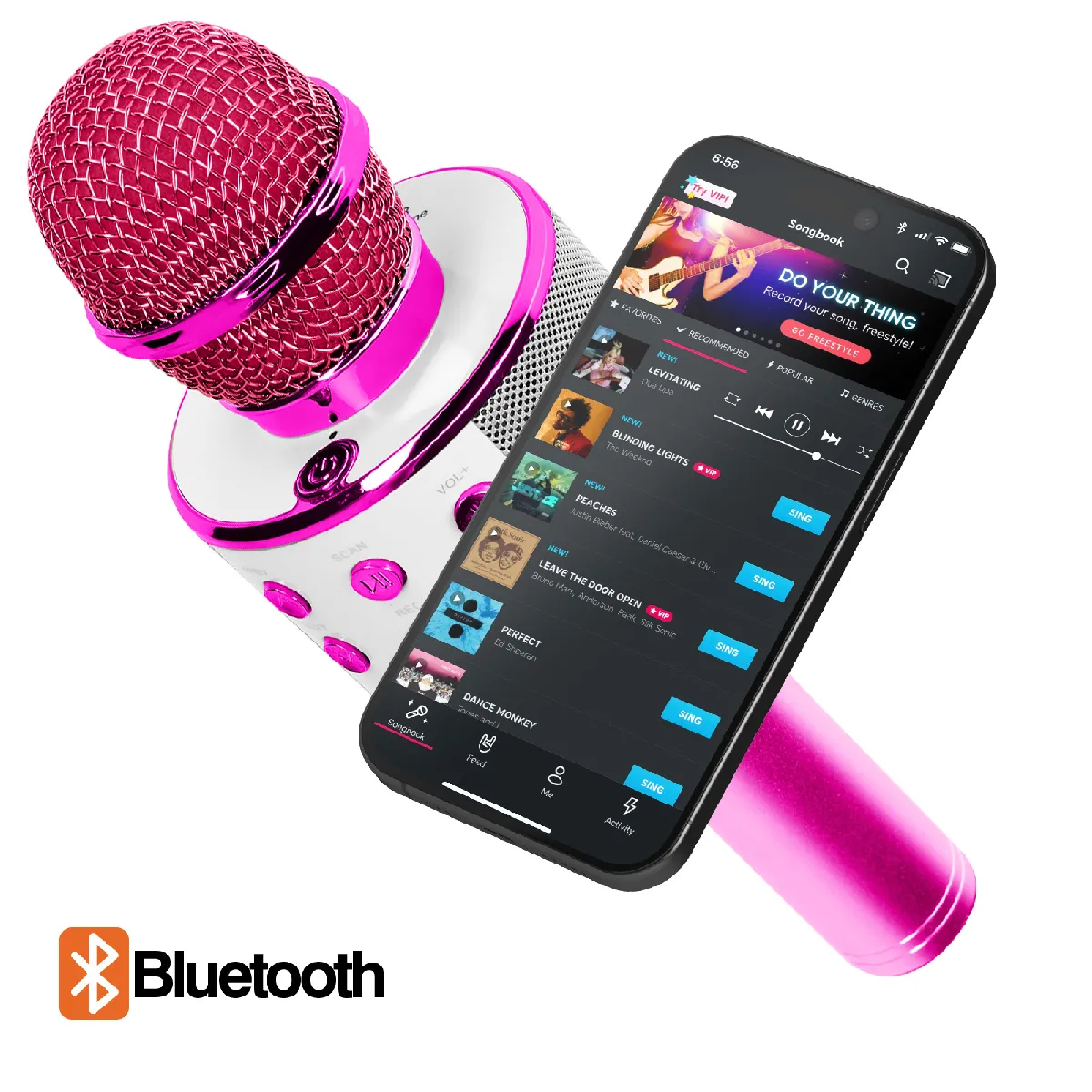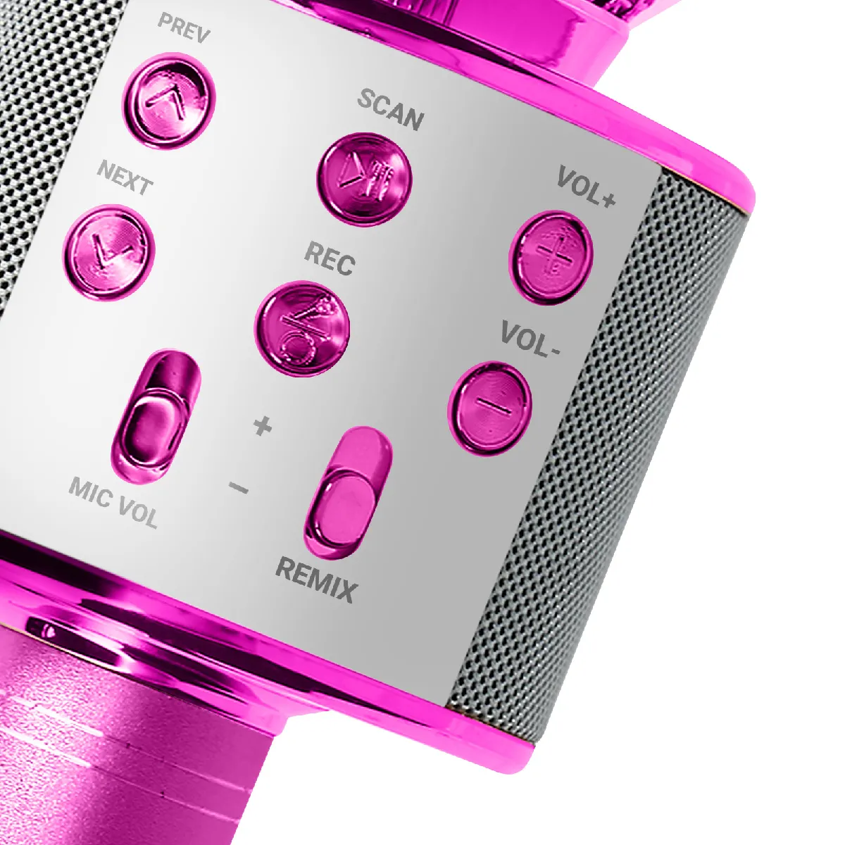 Micro karaoké sans fil - Haut-parleur intégré - Bluetooth - Effets de voix - Entrée jack 3,5 mm - Lecteur carte TF - Port USB - Boutons multifonctions