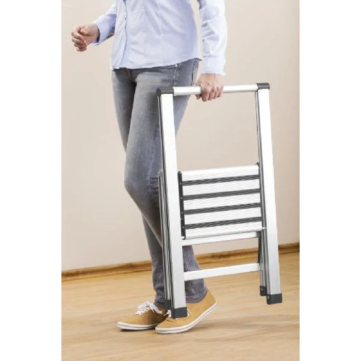 Escabeau pliable en aluminium - 1 marche - Hauteur de travail max 71 cm - Poids max 150 kg