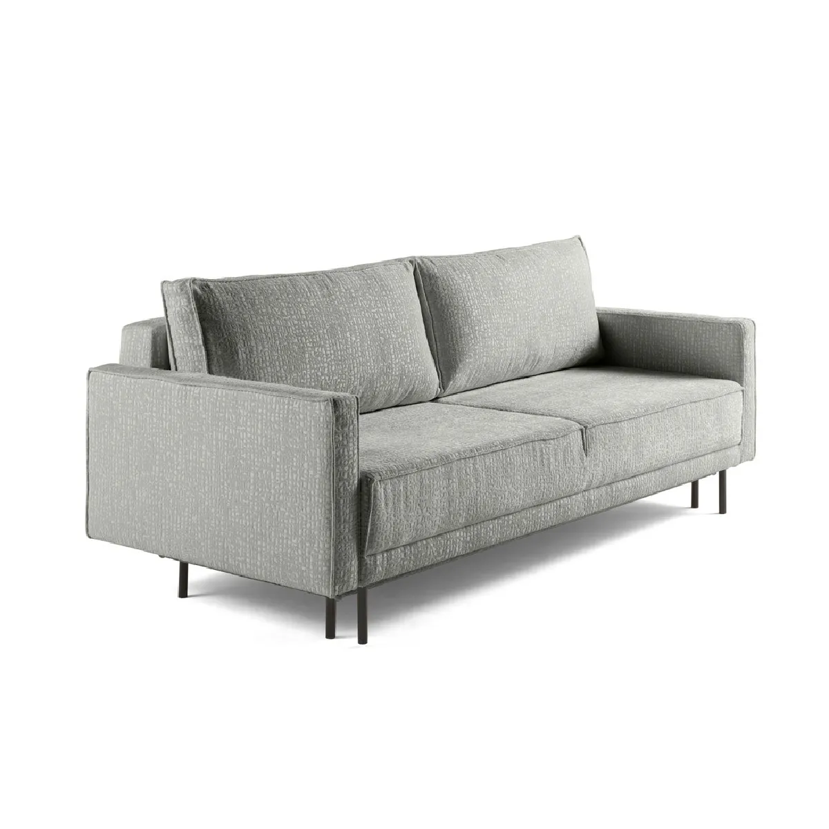 La transformation en couchage d'appoint se fait par dossier rabattable pour un déploiement rapide, idéale pour les nuits occasionnelles. Le revêtement en tissu velours gris à l'aspect relief crée une assise visuellement chaleureuse et agréable au toucher. La structure associe bois massif et panneaux de particules avec des pieds en métal pour une base stable. Le garnissage combine mousse polyuréthane et flocons de mousse pour soutenir différentes postures au quotidien. Une solution de rangement intégrée optimise l'espace du salon, tandis que les dimensions 215 x 98 x 90 cm conviennent à un usage 3 places. Le style moderne s'intègre à des décors variés.