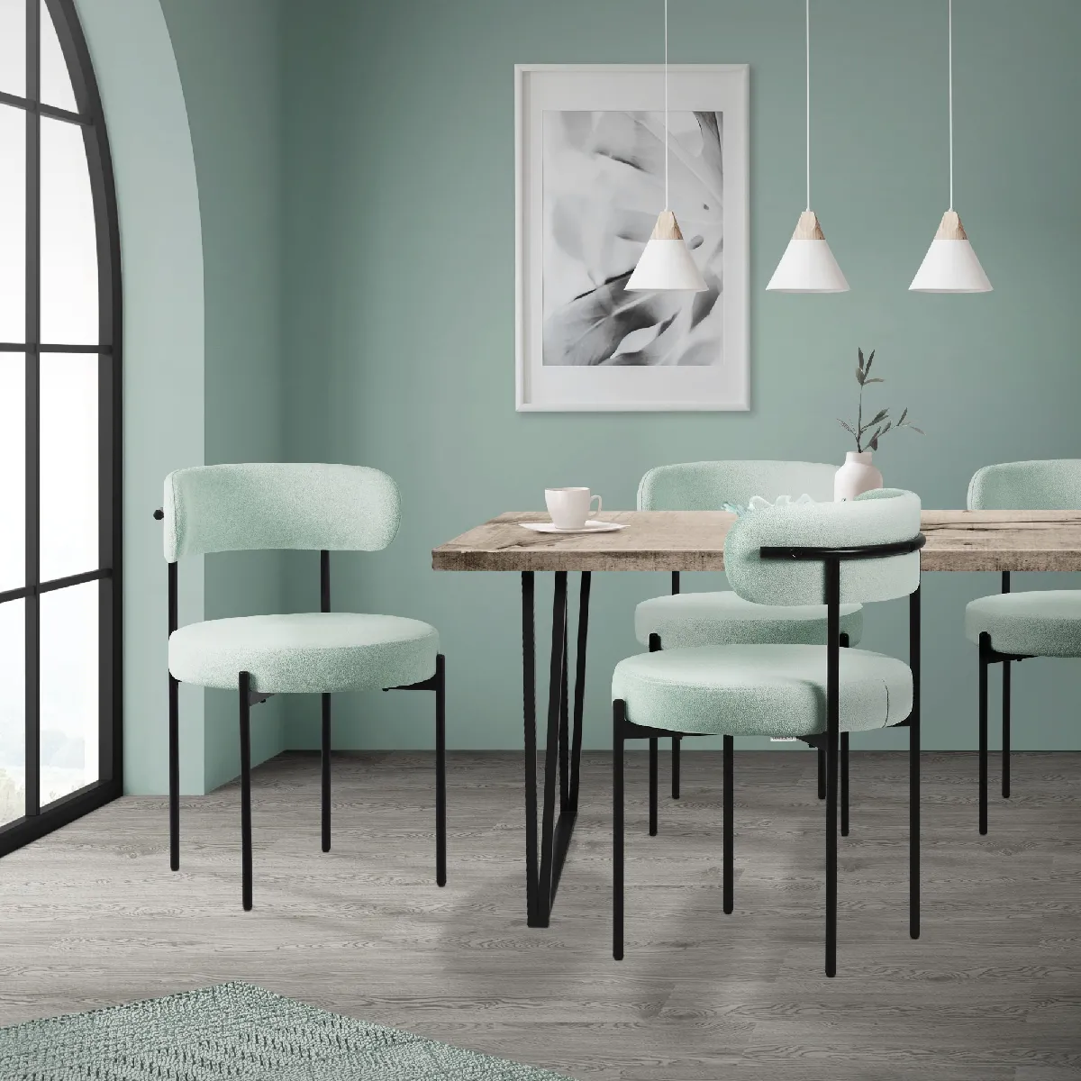 Chaise de cuisine - Tissu Teddy - Dossier rond - Piètement en acier - Design élégant