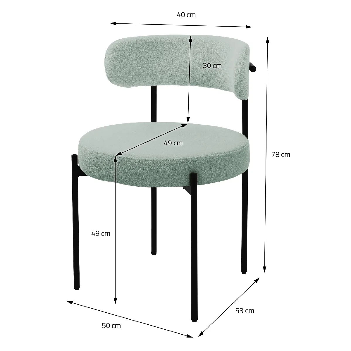 Profitez d'un confort luxueux : le revêtement doux en tissu Teddy confère à nos chaises non seulement une élégance moderne, mais aussi une sensation d'assise agréable. La hauteur d'assise confortable de 49 cm vous permet de manger en toute sérénité, tandis que la profondeur d'assise généreuse de 49 cm offre un espace supplémentaire pour le confort.