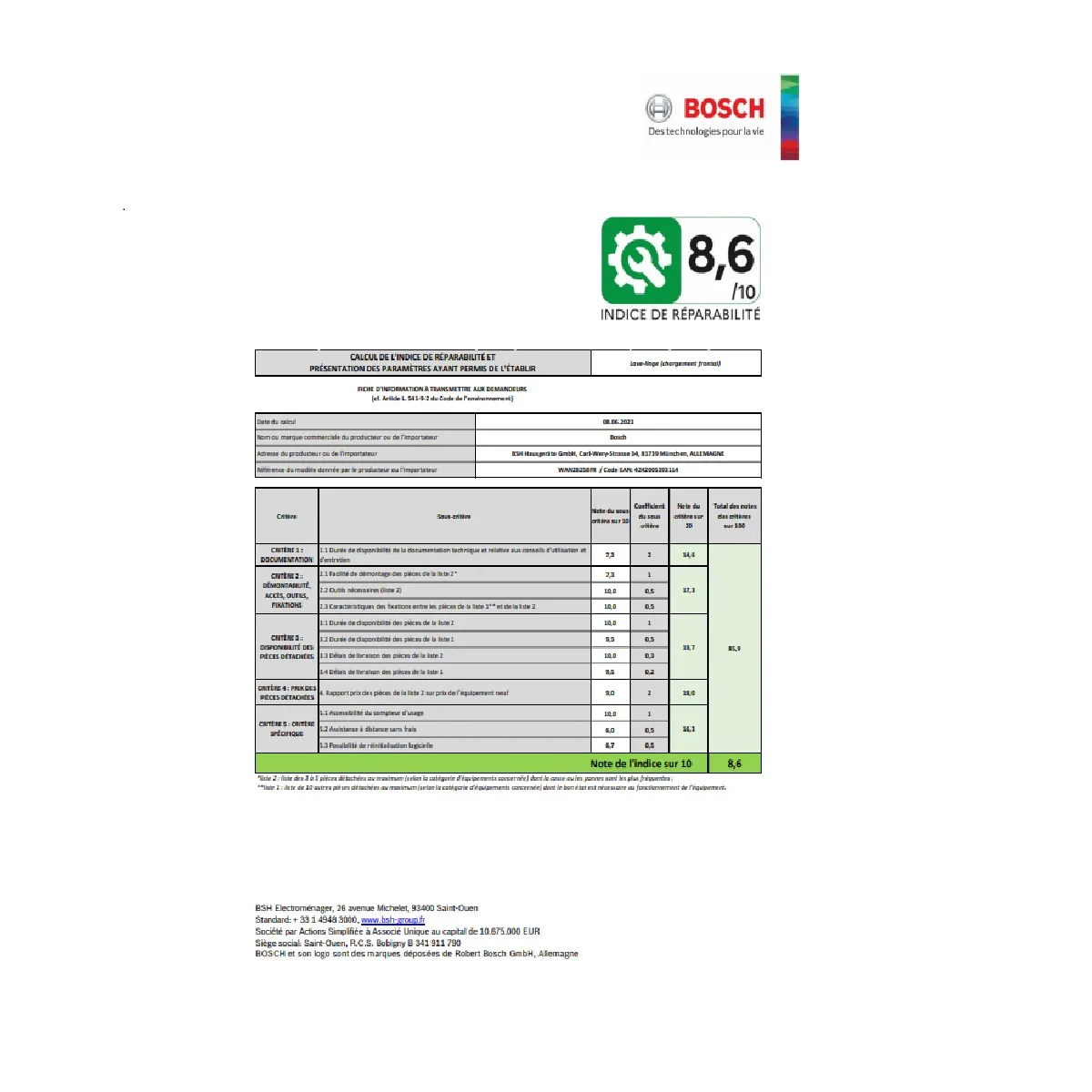 Avec ses dimensions de 845 x 598 x 590 mm, ce modèle en pose libre s'intègre aisément dans une niche standard. La classe d'efficacité d'essorage B et la classe de lavage A assurent un traitement efficace des textiles. La classe sonore A accompagne un niveau de 72 dB(A) en essorage. L'appareil propose un affichage du temps restant et une fin différée jusqu'à 24 h pour mieux organiser les lessives. L'indice de réparabilité de 8,6 informe sur la capacité d'entretien et de réparation pour prolonger l'usage.