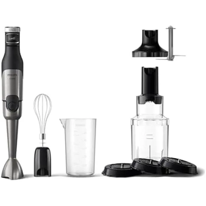 Le spiraliseur transforme les légumes en nouilles à faible teneur en glucides pour des préparations variées avec courgettes, carottes ou concombres. Le hachoir XL pratique pour herbes, noix et viande étend les possibilités, allant des pestos aux farces. Le fouet pour la crème et la mayonnaise aide à monter des sauces aérées et des desserts légers. Le système de changement d'accessoire par simple pression accélère la transition entre tâches, afin de passer du mixage au hachage ou au fouettage sans interrompre la recette.