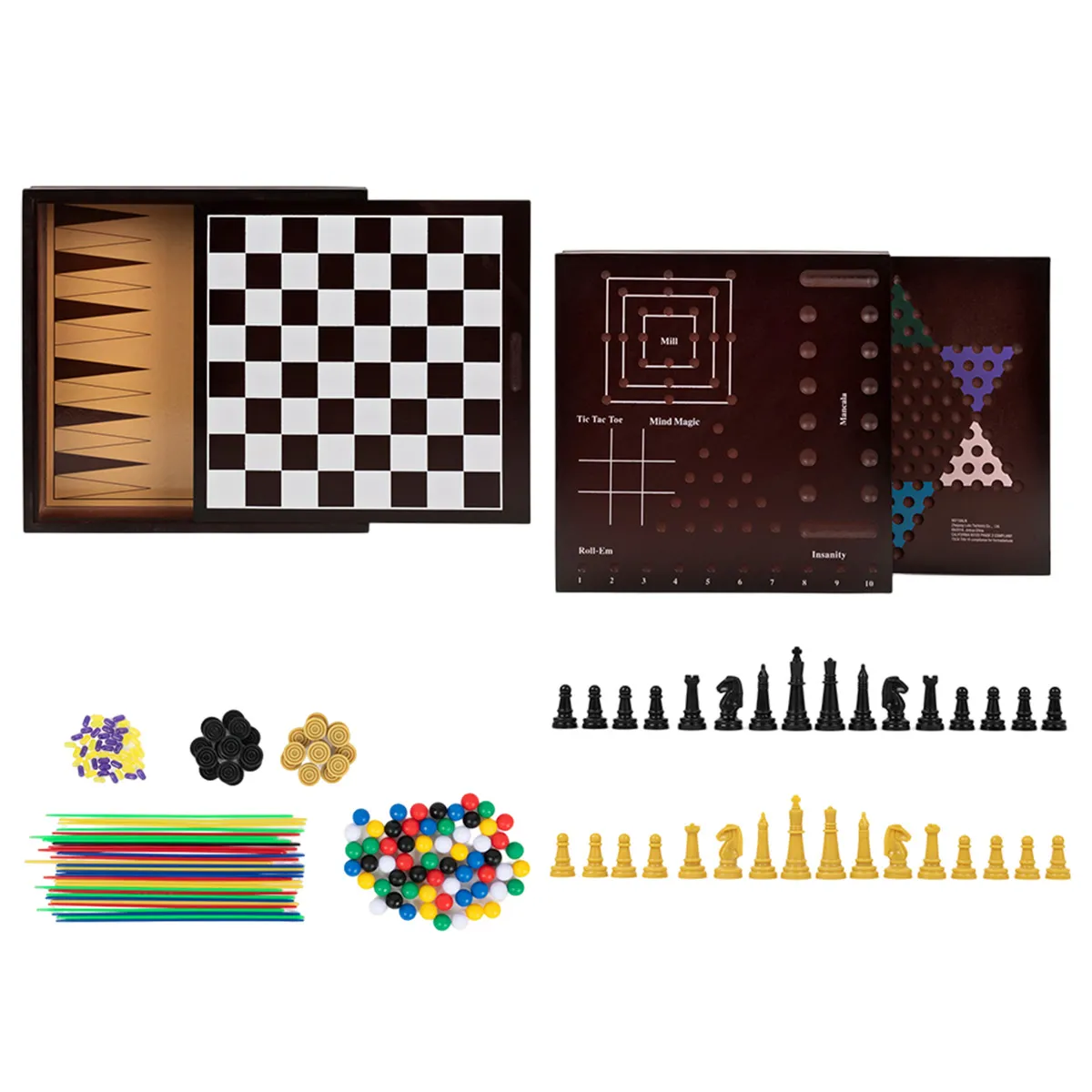 Le spin master est un ensemble de 10 jeux réunis dans un seul coffret pour de multiples possibilités de jeux selon vos choix. Des jeux traditionnels y sont proposés comme l'échecs, les dames, le backgammon, les dames chinoises, le mankala, le jeu du moulin, le tic-tac-toe, le mikado, le pexeso et le peg. L'ensemble contient 10 planches différentes dans une seule boîte avec les accessoires et instructions de jeu.