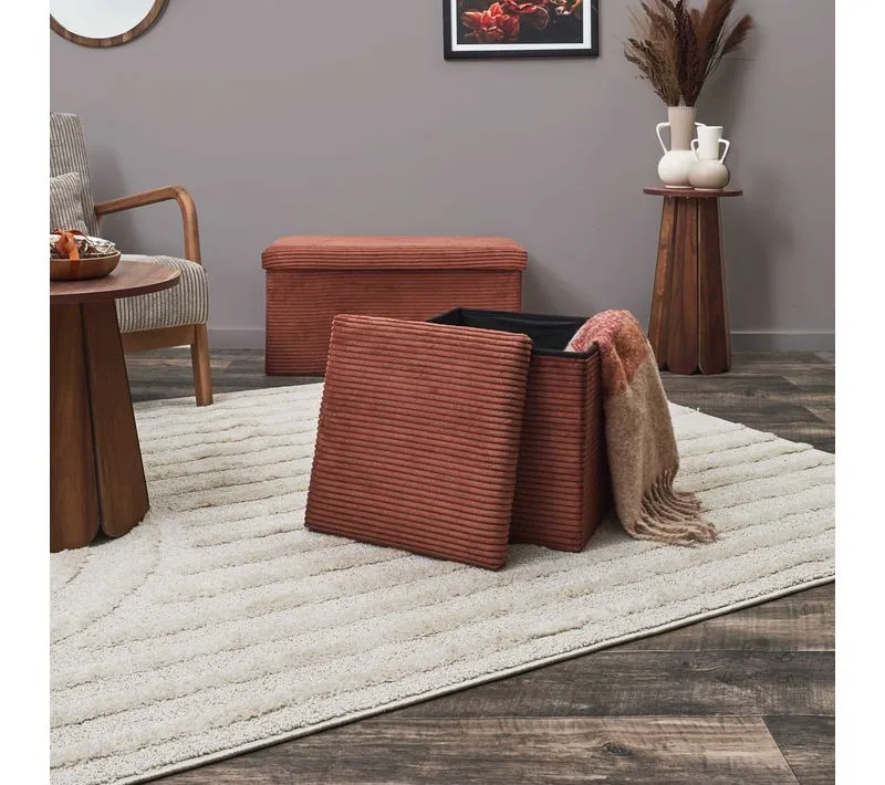 Pensé pour les petites surfaces comme pour les pièces familiales, ce modèle combine coffre de rangement discret et assise d'appoint stable. Les dimensions 38 x 38 x 38 cm facilitent l'intégration près d'une table basse, d'un bureau ou dans un coin d'entrée. La structure en polyester et le revêtement en tissu terracotta s'accordent avec des ambiances naturelles ou design, tout en offrant une surface agréable au toucher.