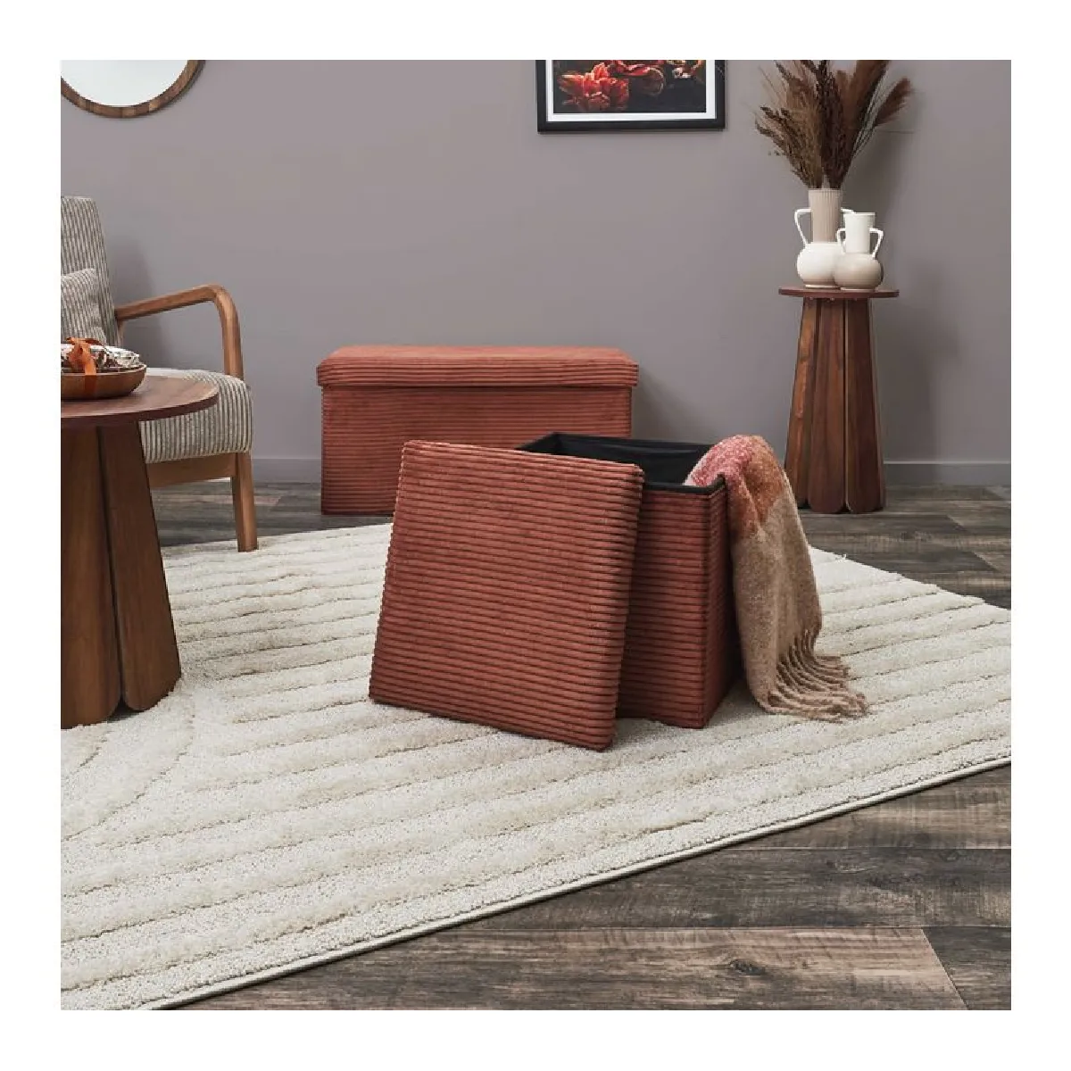 Pouf design carré terracotta, siège d'appoint et rangement discret
