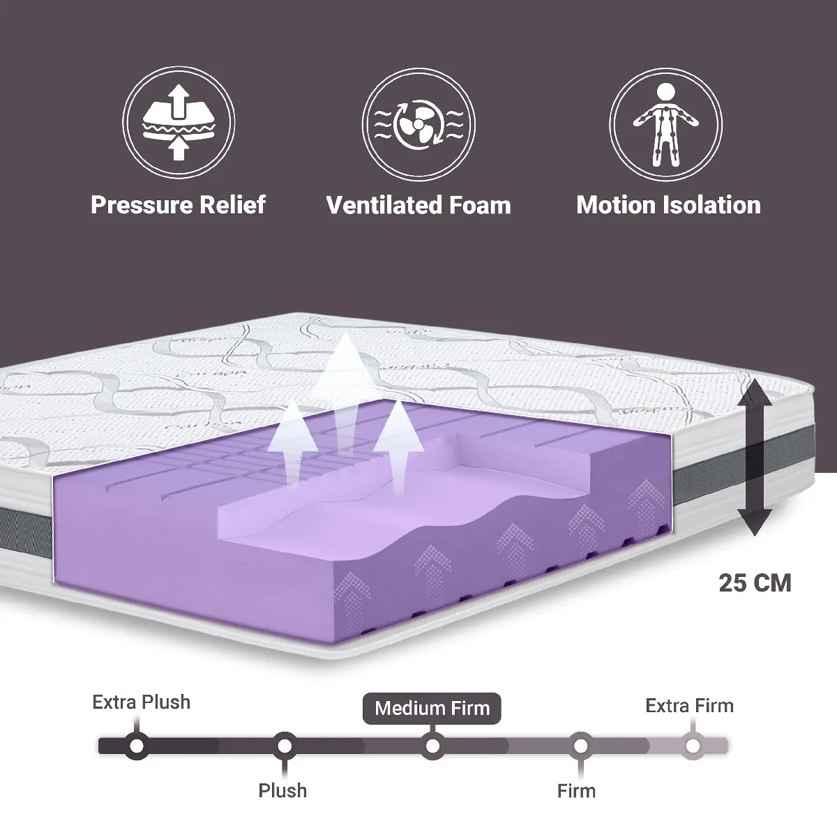 FORMULE POLY CARBON. Le matelas The White Stone de 25 cm est composé d'une couche interne en mousse expansée à l'eau. Sa composition spéciale rend le noyau hautement respirant, favorisant une circulation constante de l'air et évitant l'accumulation d'humidité. Sa fermeté moyenne le rend idéal pour un usage quotidien, garantissant un sommeil sain et une grande durabilité dans le temps.