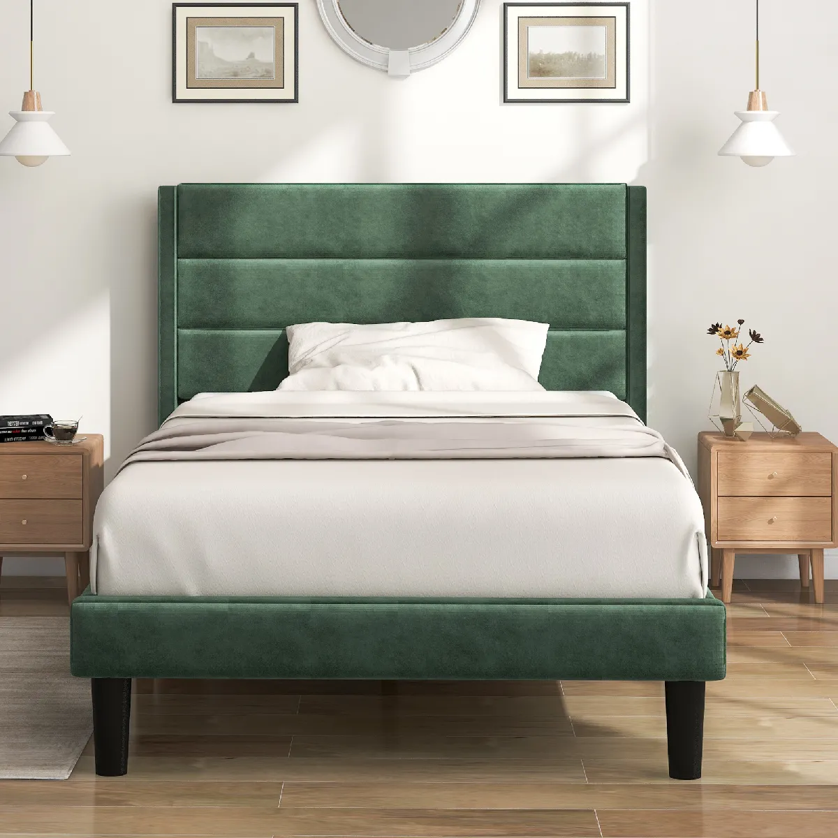 Design uniqueLa tête de lit a un design unique qui rassemble trois panneaux de tissu rembourrés, et le design simple des coutures deviendra le point central de votre chambre. Conception réfléchie Le bas de tous les pieds est équipé de tapis antidérapants pour protéger le sol tout en maintenant la stabilité. La hauteur du côté du lit de 29 cm est confortable pour s'asseoir, s'allonger, entrer et sortir du lit. L'espace de 16 cm sous les pieds offre un espace de rangement supplémentaire pour vos bricoles. Matériau de haute qualité Le tissu en lin cueilli à la main a un toucher doux et est doux pour la peau. La tête de lit rembourrée vous permet de lire un livre confortablement au lit et offre à votre dos un soutien confortable. Accessoires de quincaillerie robustes, pieds de support sur le côté du lit et au milieu du lit pour garantir la stabilité et la fermeté. Structure stable Le cadre de lit du lit rembourré est stable, facile à assembler et la surface de couchage du lit mesure 90*200 cm. Les lattes en bois minimisent le bruit pendant votre sommeil et prolongent la durée de vie de votre matelas. Le sommier à lattes avec barre centrale stabilisatrice rend le lit extrêmement robuste. De plus, des pieds de support supplémentaires assurent un maintien ferme.Capacité de charge maximale : 113 kg. Assemblage facile avec des instructions claires Vous pouvez installer le lit avec les instructions claires. Si vous rencontrez un problème, veuillez contacter notre service client, nous vous donnerons la meilleure solution dans les plus brefs délais.Informations générales |