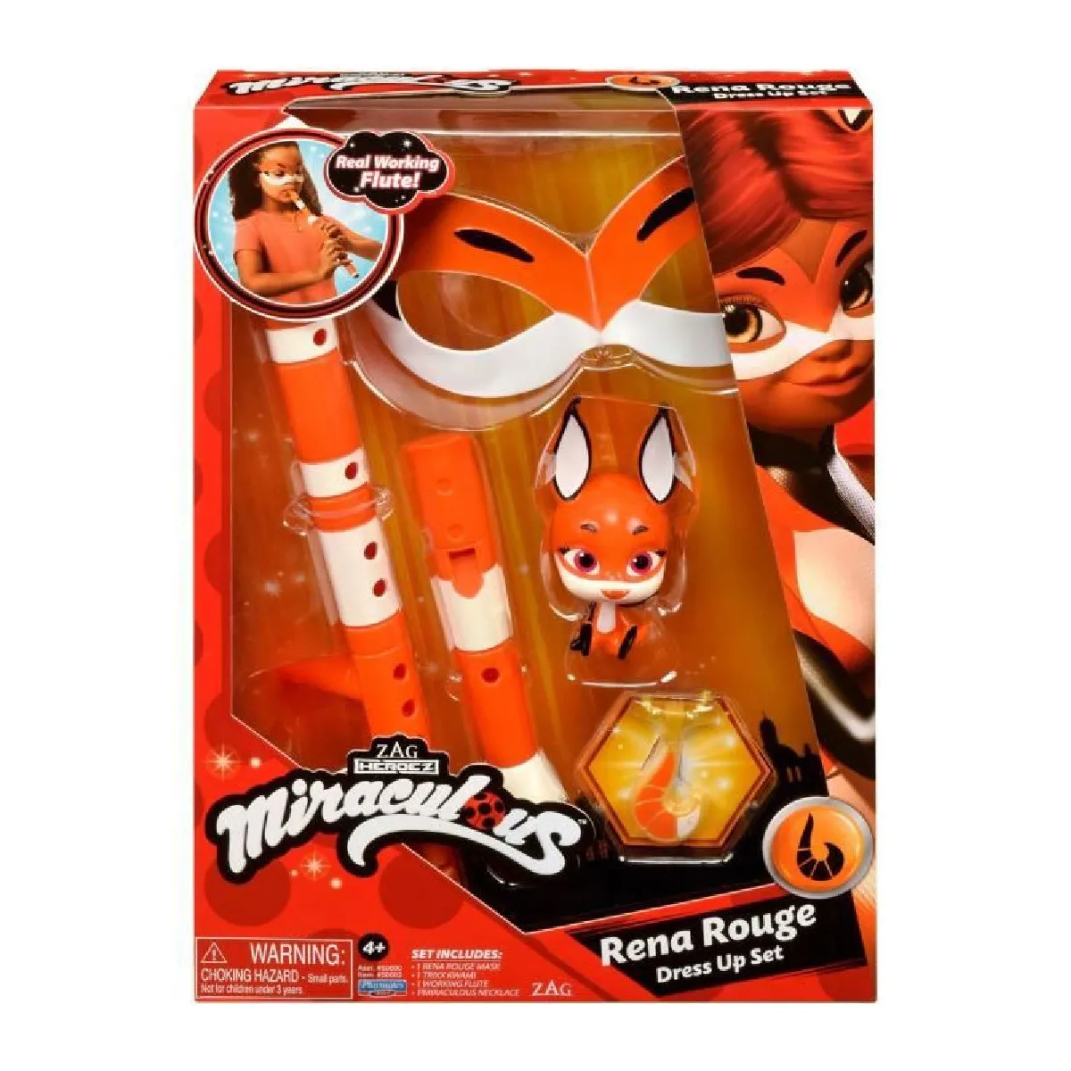 Le contenu du set comprend un masque, un pendentif, une flûte fonctionnelle transformable et une figurine de Trixx, pour une panoplie complète de transformation. Les éléments sont adaptés au jeu d'imitation à partir de 4 ans et plus, avec la présence de petites pièces nécessitant l'attention d'un adulte pour les plus jeunes. L'intégration est simple aux autres jouets de la même licence afin de créer un univers Miraculous cohérent et enrichir les histoires au fil des épisodes préférés.