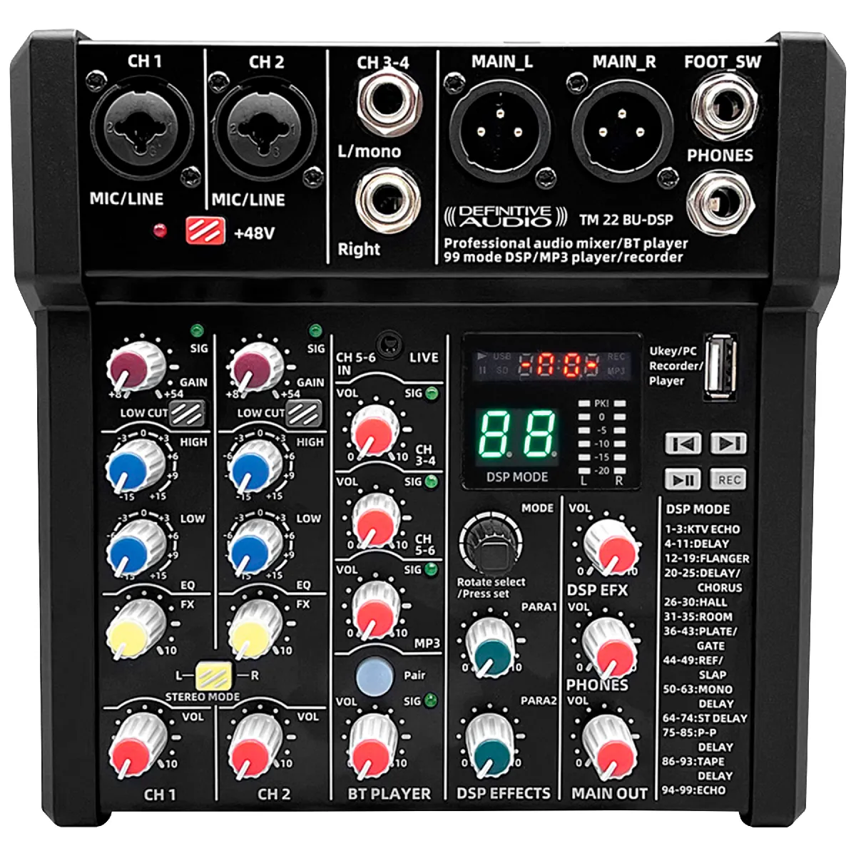Table de mixage 5 canaux - Préamplis micro haute qualité - DSP 99 effets 24bit/48kHz - Bluetooth - Lecteur/enregistreur USB MP3/WAV/APE/FLAC - Entrées combos XLR/Jack et AUX 3,5 mm
