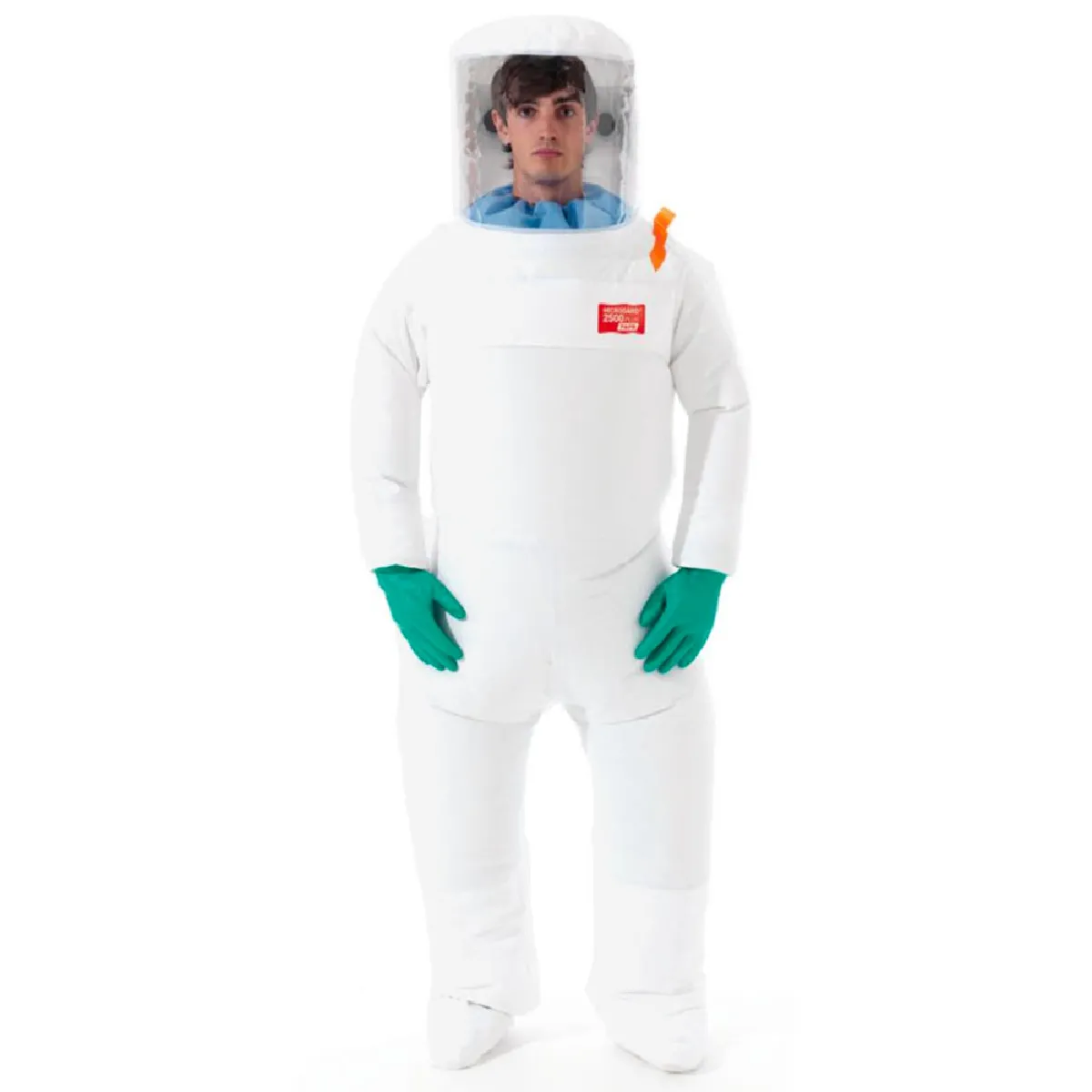 . Protection contre les particules : Efficace contre les particules, y compris les ingrédients pharmaceutiques actifs (IPA). Résistance aux produits chimiques : Convient pour des produits chimiques à faible risque. Agents biologiques : Protection contre les agents biologiques des groupes de risque 1 & 2. Contamination radioactive : Protection contre la contamination par particules radioactives (ne protège pas contre la radiation radioactive). Coutures renforcées : Coutures cousues et recouvertes d une bande thermocollée pour une résistance améliorée. Appareil respiratoire à purification d'air Scott Proflow non fournis.Description de la combinaison MICROGARD 2500 PLUS :