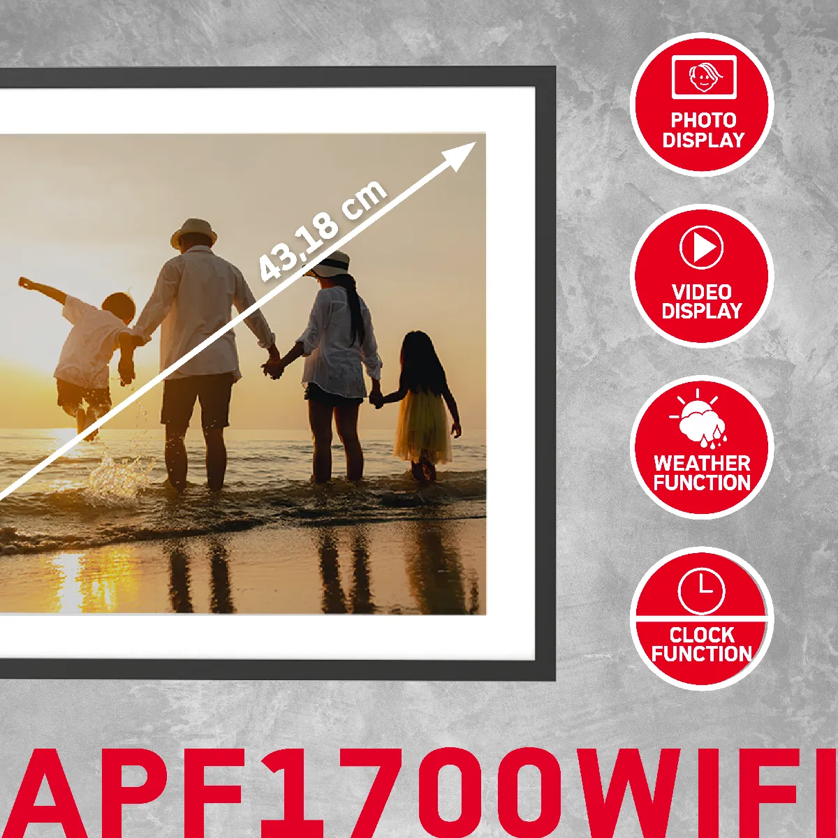 Cadre photo numérique WiFi - Écran tactile HD 17" - Mémoire 32Go - Partage