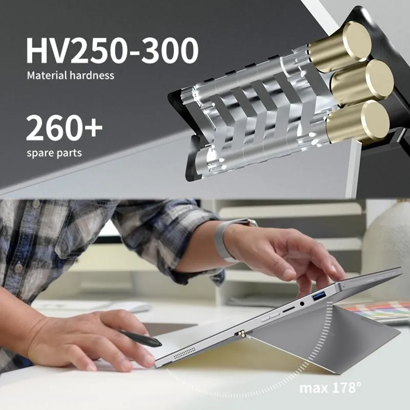 Sous Windows 11, l'interface exploite pleinement l'écran tactile pour le multitâche. Le clavier fourni transforme rapidement l'appareil en poste de saisie, tandis que le mode tablette pour consultation et vidéo reste accessible à tout moment. Les ports présents, dont Mini HDMI, USB 3.0 et TypeC, simplifient le raccordement à des écrans et à des périphériques. Le lecteur de carte TransFlash pour transfert rapide ajoute une option pratique pour importer des fichiers ou étendre l'espace de travail.