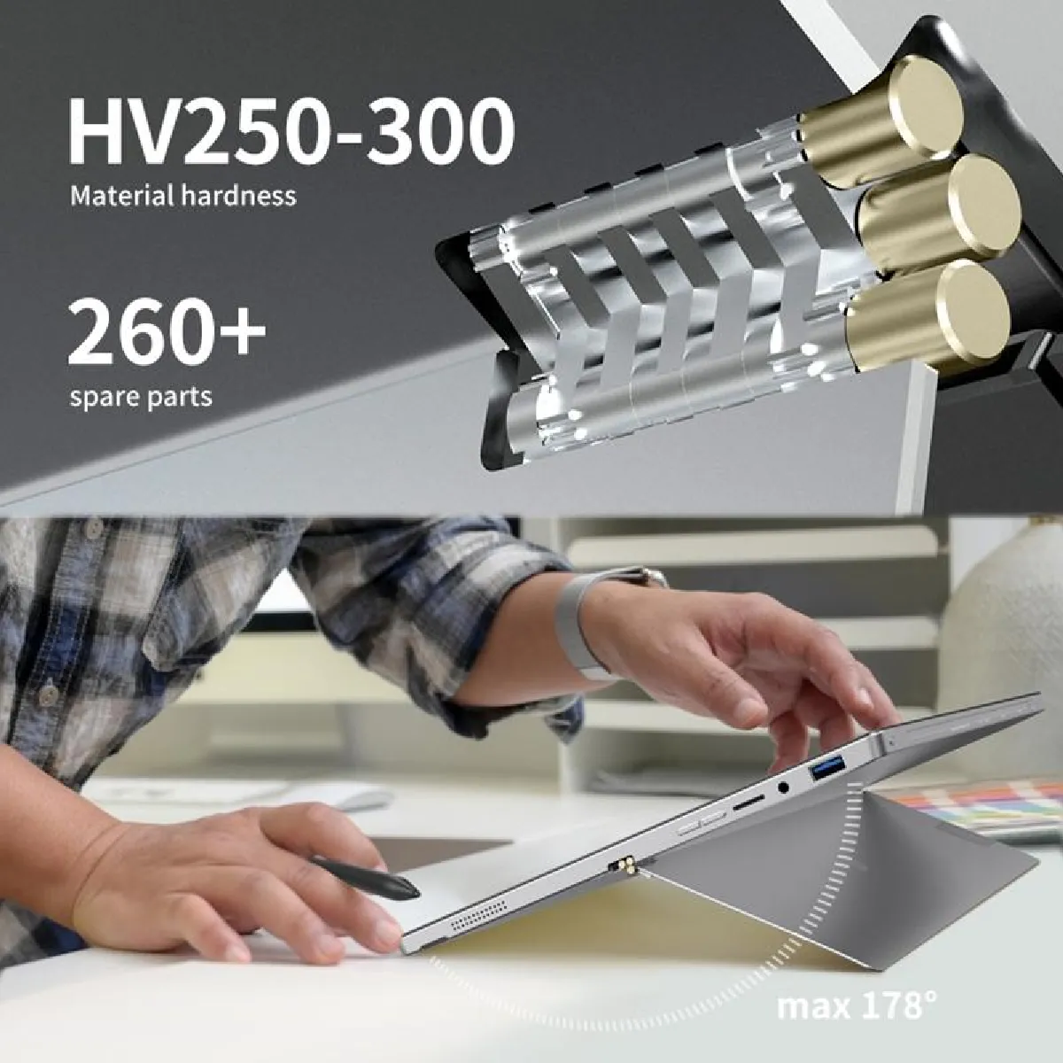 La dalle IPS 13 pouces en 2160 x 1440 pixels propose des détails fins et des couleurs homogènes. La commande tactile 10 points pour navigation et croquis facilite l'annotation, le zoom et le glisserdéposer. Le format compact 306 x 217 x 9.8 mm s'intègre dans un sac sans encombre, avec un poids de 0.975 kg pour une mobilité confortable au quotidien. La webcam frontale permet les visioconférences et la résolution élevée pour lecture de documents rend les textes et schémas lisibles sans effort.