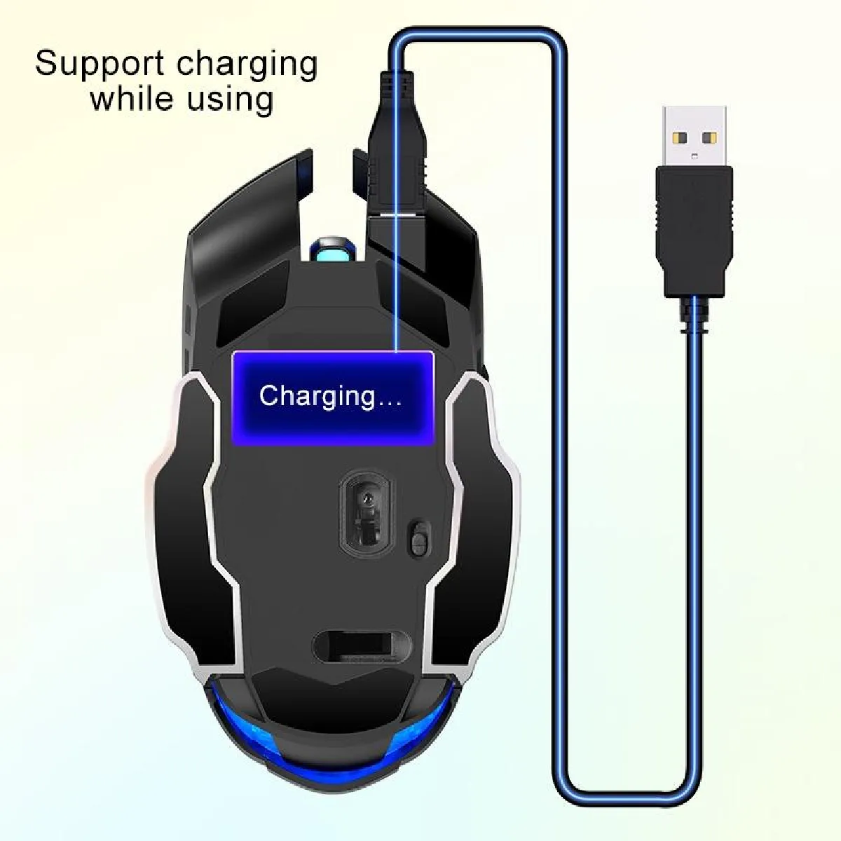 Souris gaming sans fil - silencieuse - rechargeable - ergonomique - 6 boutons - rétroéclairée