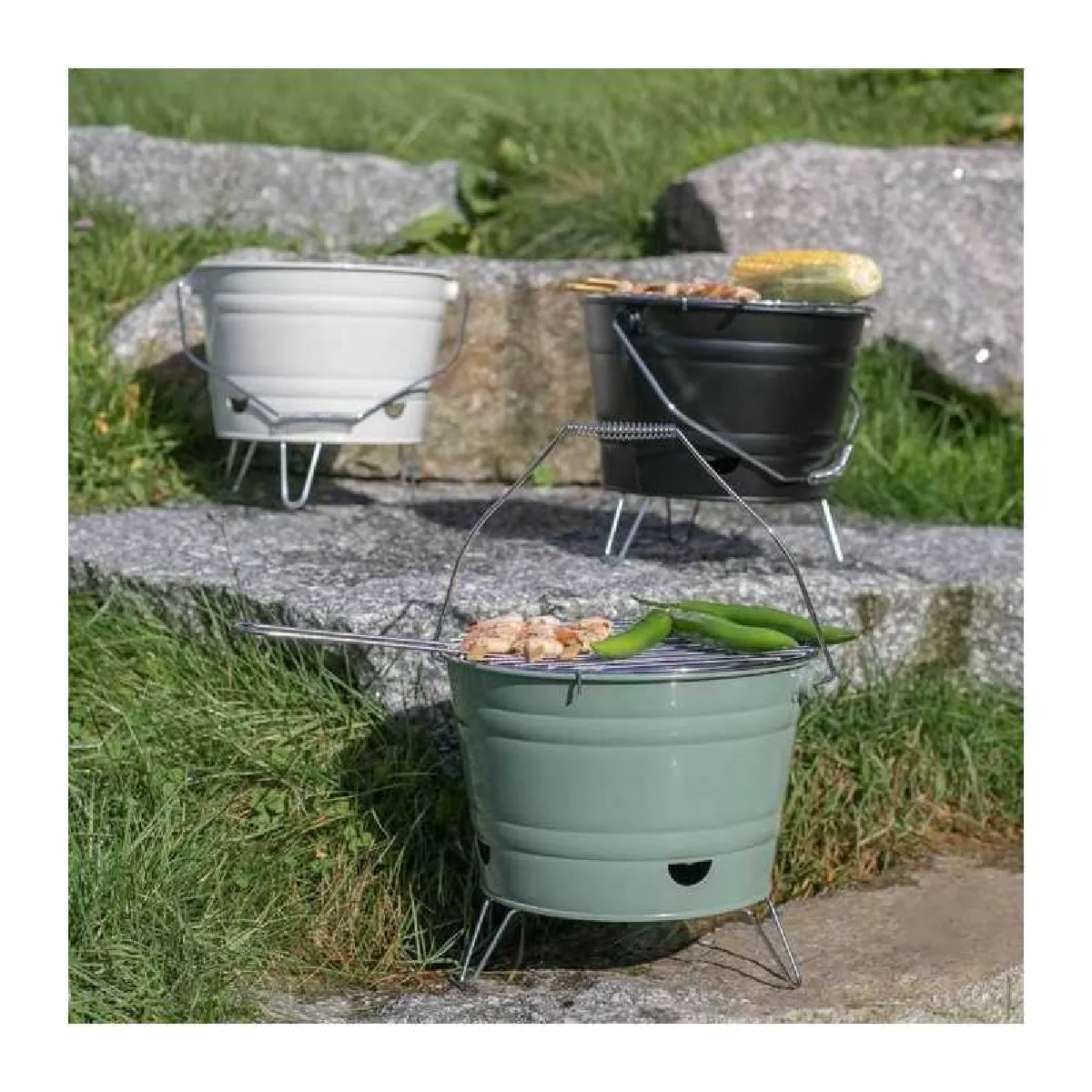 Conçu pour être transporté, ce modèle privilégie la maniabilité avec son poids de 1.45 kg et ses pieds pliables. Le format seau équipé d'une poignée facilite les déplacements entre la voiture et l'aire de pique-nique. Une fois en place, la stabilité sur pied soutient la grille en acier chromé, tandis que le corps en acier peint et le bol en acier galvanisé résistent aux chocs du quotidien. Son encombrement réduit permet de cuisiner sans monopoliser l'espace extérieur.
