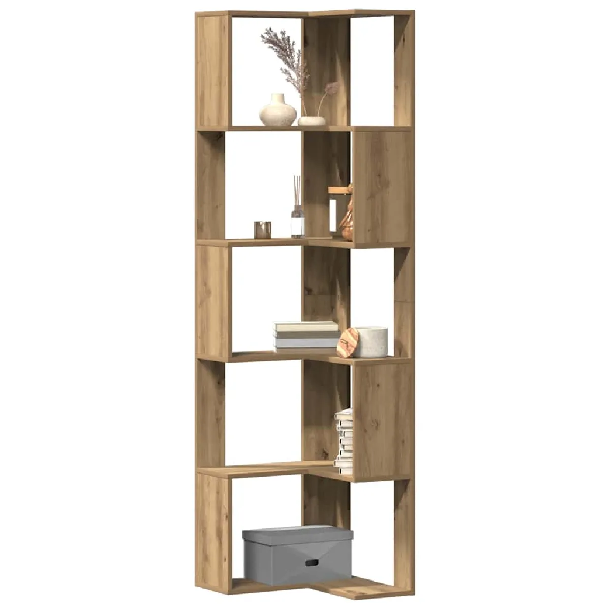 Bibliothèque d'angle - 5 niveaux - Chêne artisanal - Bois ingénierie