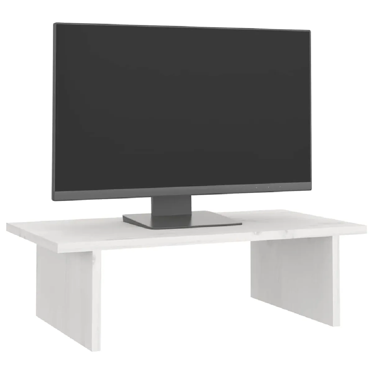 Support moniteur - Bois massif - Blanc - 50x27x15 cm