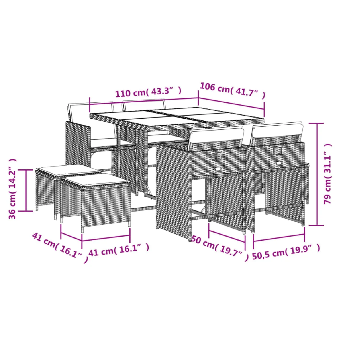 VidaXL Ensemble à Manger de Jardin avec Coussins 9 pcs - Mélange Beige