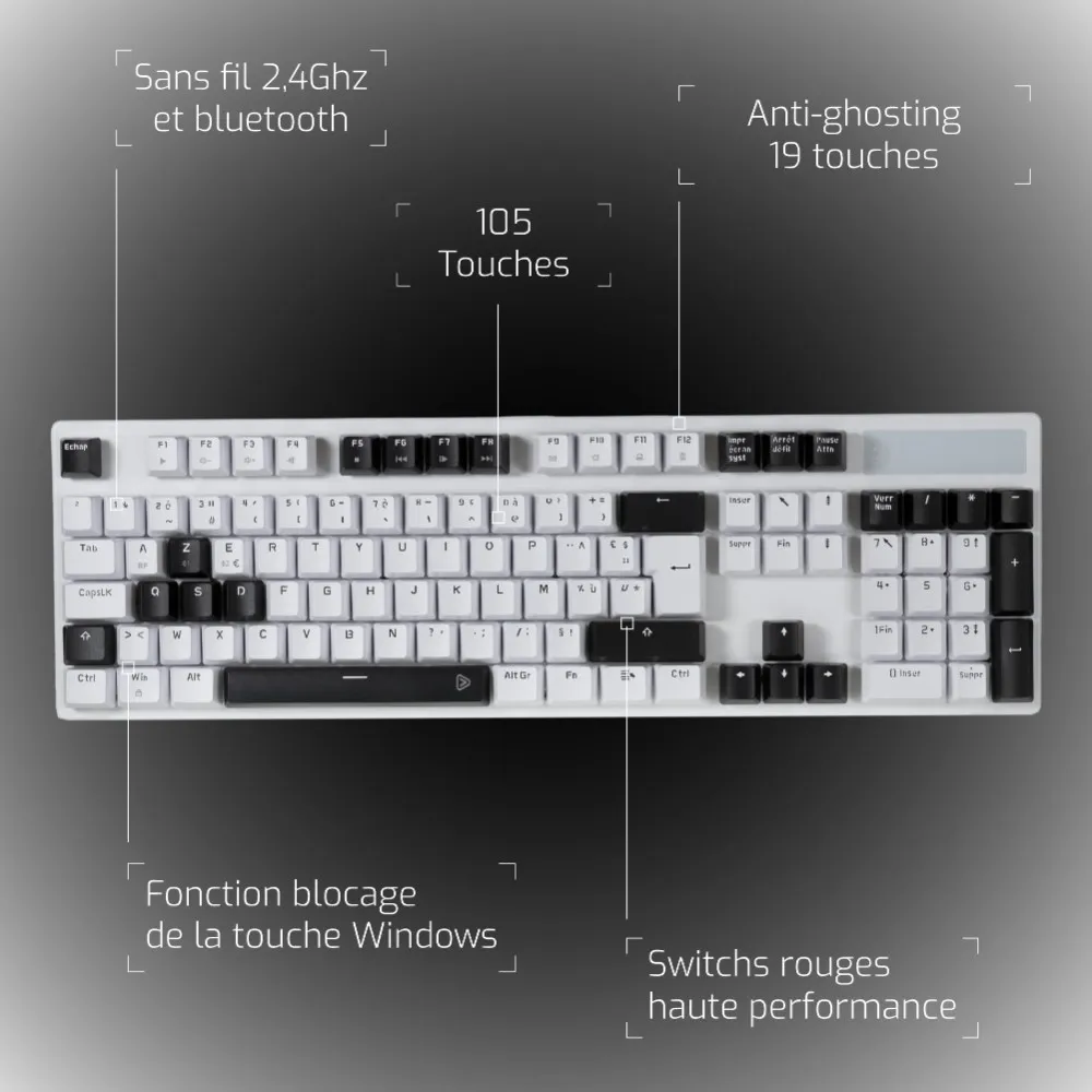 Clavier mécanique sans fil - AZERTY - switch Cherry MX Red - anti-ghosting