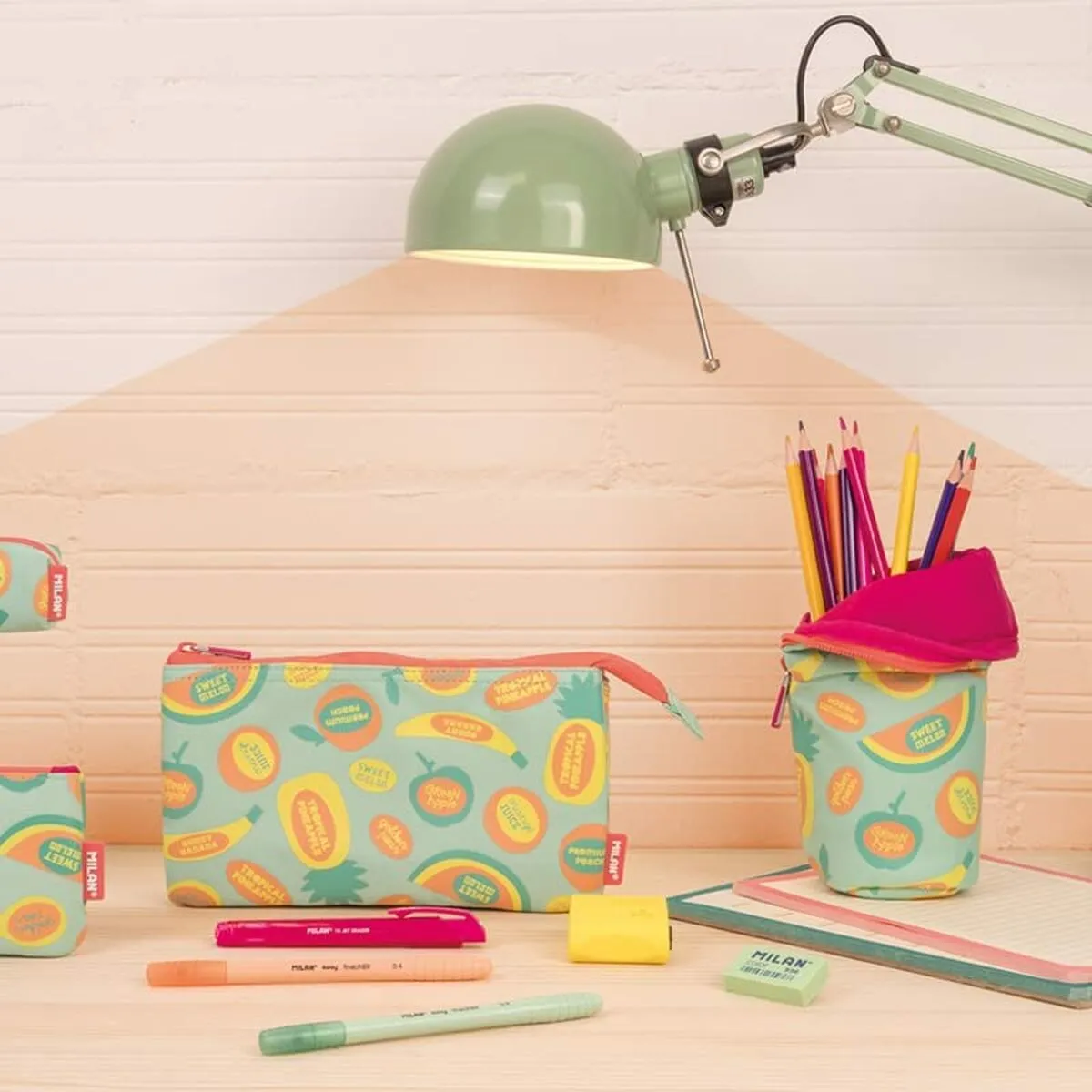Retournez au bureau sans rien oublier ! Achetez Trousse d'écolier Milan FRUTIKIS Vert Orange 21 x 11,5 x 8 cm et faites envie à vos collègues!