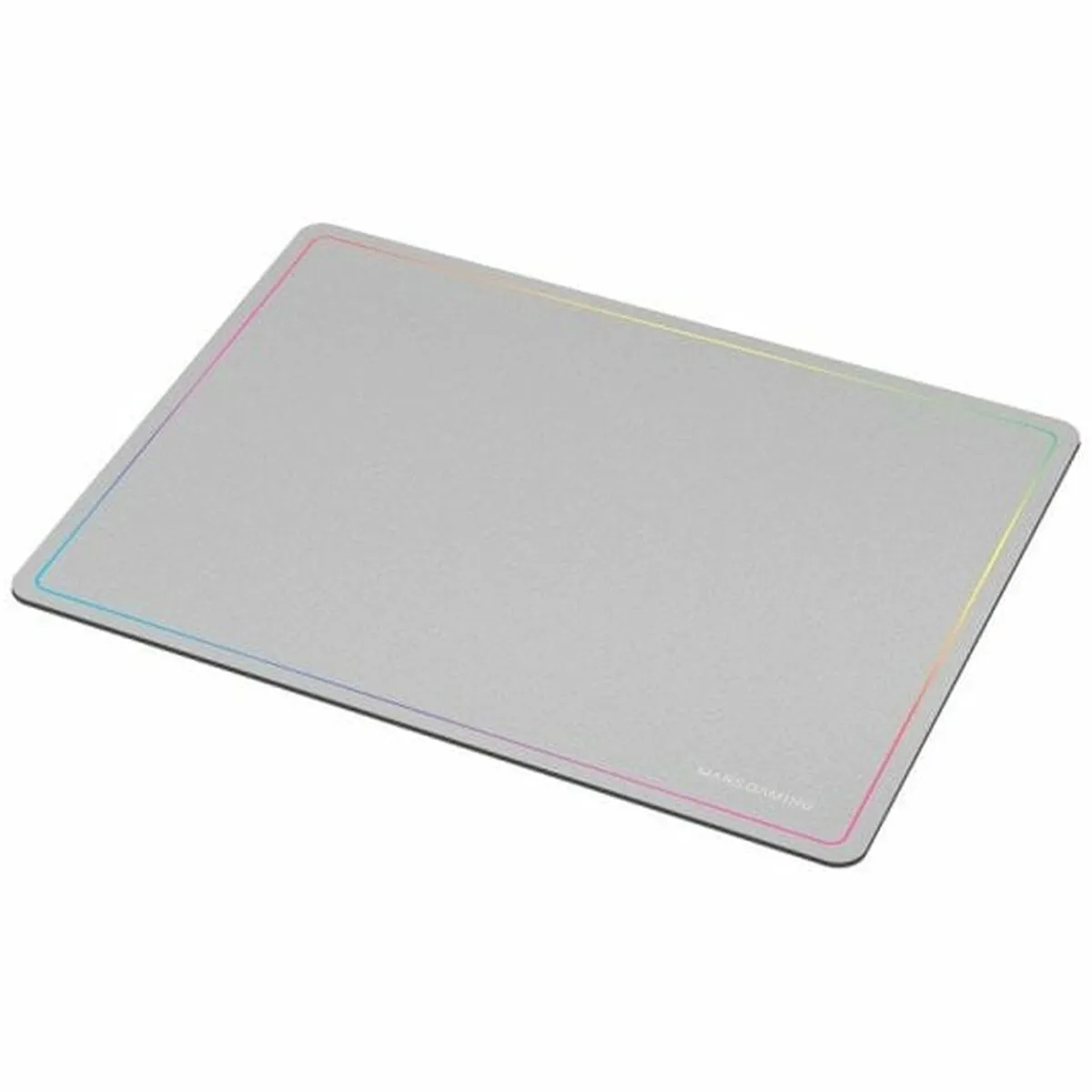 La structure souple et 100 % flexible s'adapte aux besoins : il suffit de l'enrouler pour le rangement ou le transport, sans déformation durable. Le bord à motif arc-en-ciel souligne la surface blanche et facilite le repérage visuel du tapis sur un plateau clair. L'envers noir texturé renforce l'adhérence, tandis que le marquage discret MARS GAMING reste peu intrusif dans un environnement épuré. L'absence de rétroéclairage et la finition mate privilégient une installation simple, sans câble ni réglage supplémentaire.