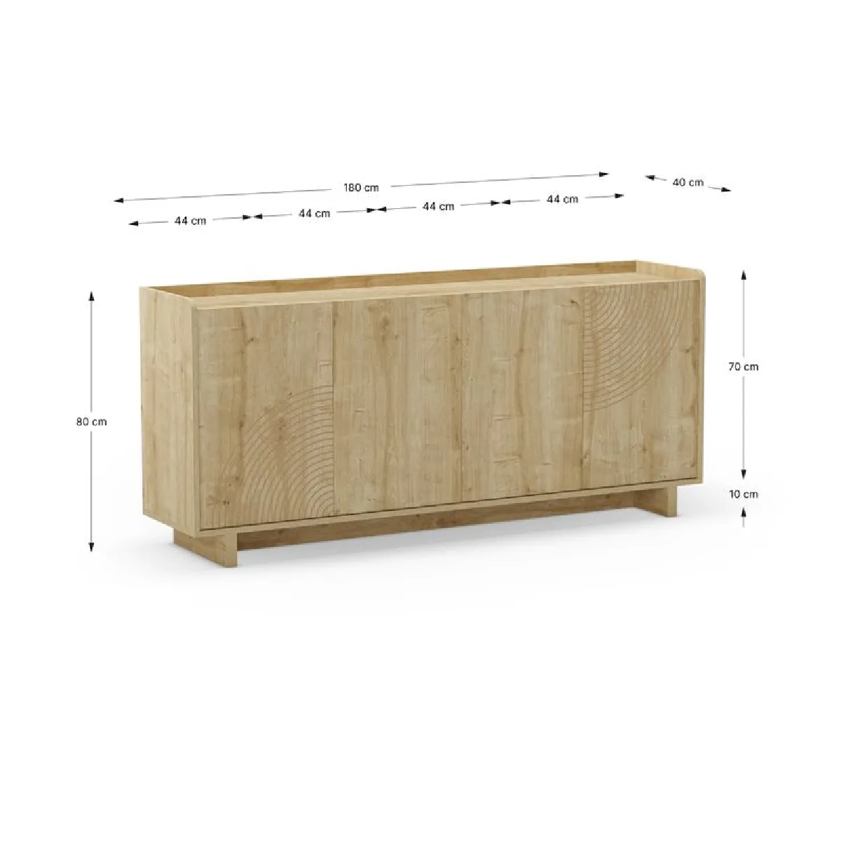 Ce buffet est très fonctionnel avec ses 4 portes qui dissimulent des espaces de rangement spacieux, idéals pour organiser vaisselle, linge de maison ou objets divers.