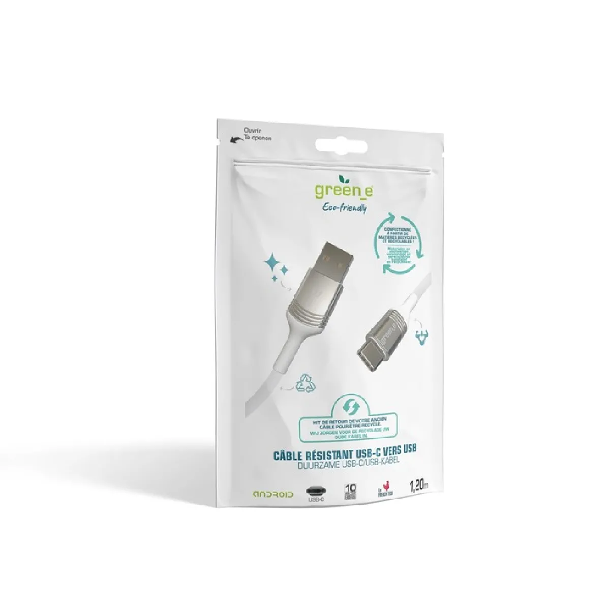Câble USB-C - USB 2.0 - 1,2 m - Recyclable - Blanc