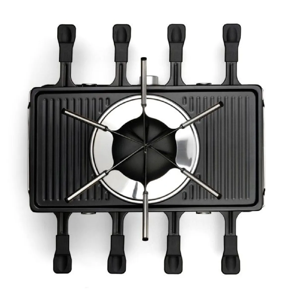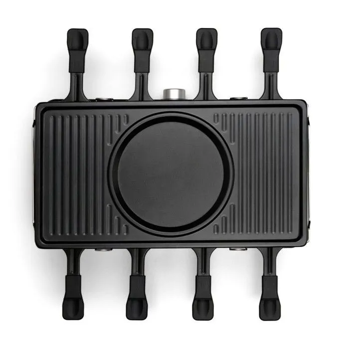 Appareil raclette et fondue - 8 personnes - Grill amovible - Crêpière - Revêtement céramique - Antiadhésif - 1400 W - Thermostat ajustable