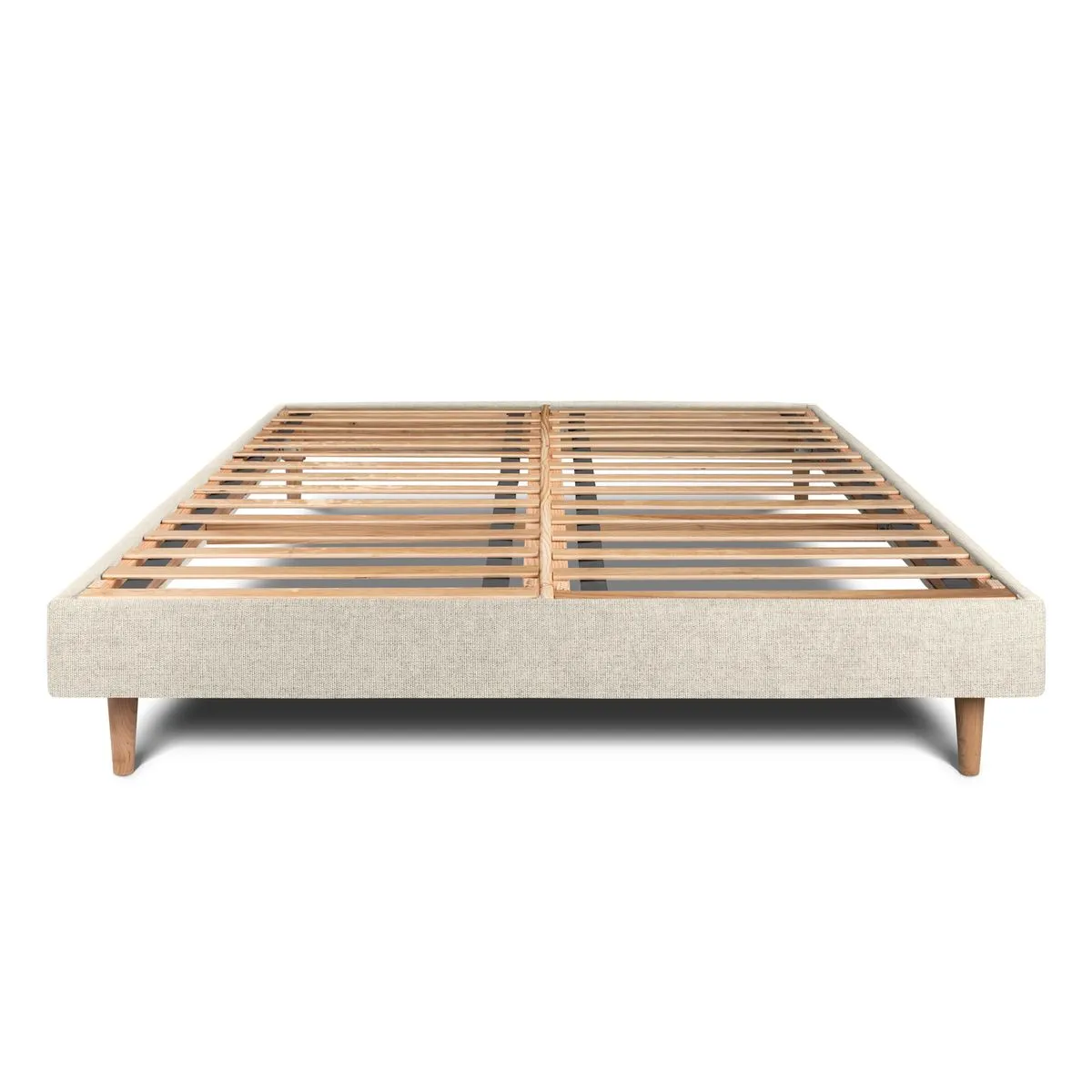 Sommier tapissier en kit - Tissu beige clair - H29 cm - Pieds bois cônes 15 cm - Tissu certifié OEKO-TEX