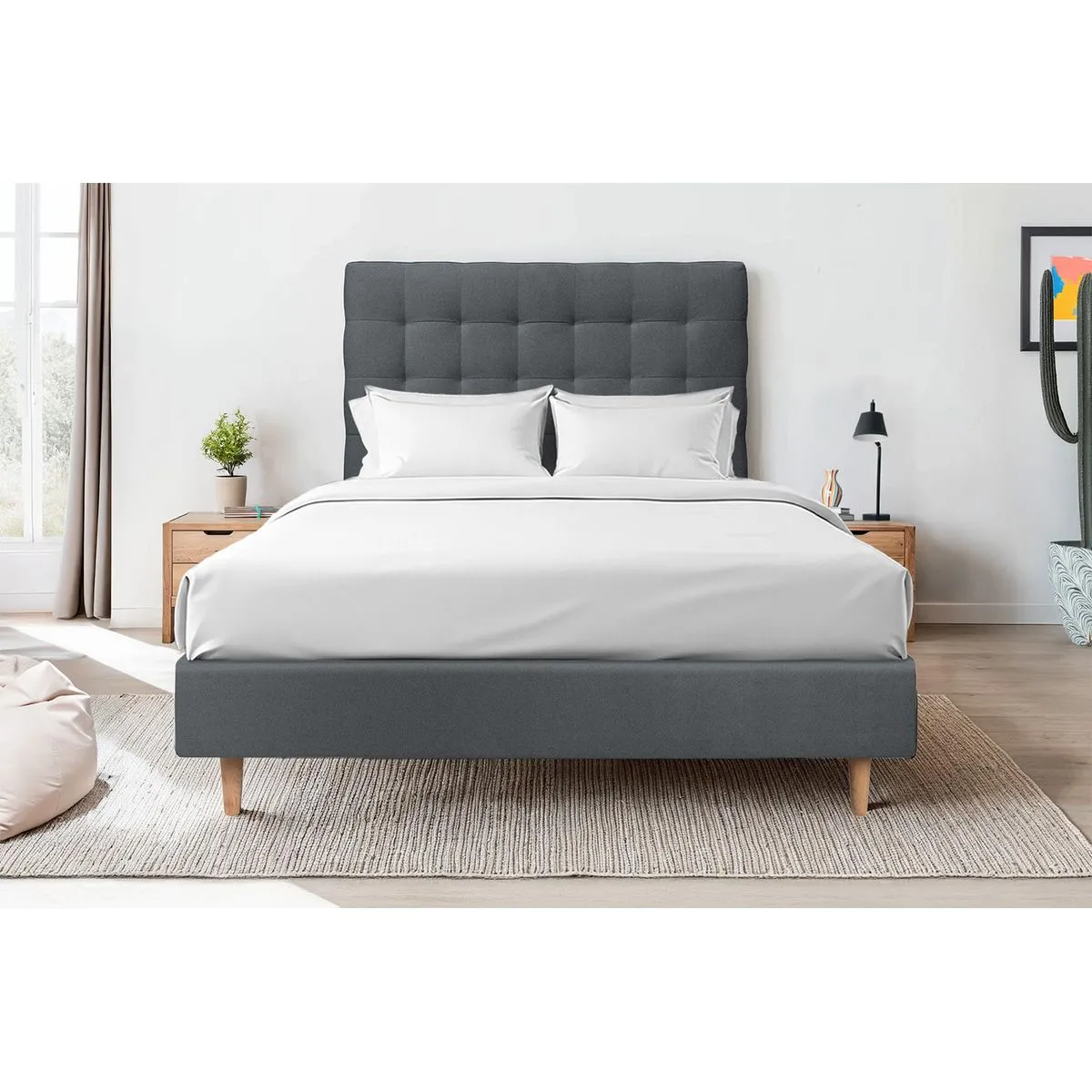 L'installation est directe : aucun montage requis. La tête de lit se pose au sol entre le sommier et le mur, ce qui simplifie la mise en place dans la pièce. Avec une largeur adaptée à un couchage 180, elle complète un grand lit et renforce la présence du mobilier. Le style design et la présentation déjà montée pour un gain de temps apportent une solution pratique pour finaliser l'aménagement de la chambre.