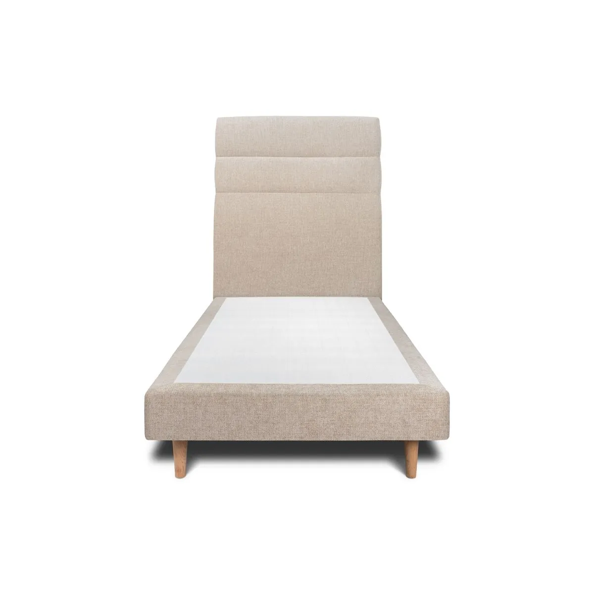 Lit avec tête de lit lignes tissu - Sommier tapissier - Beige brun - Structure bois massif