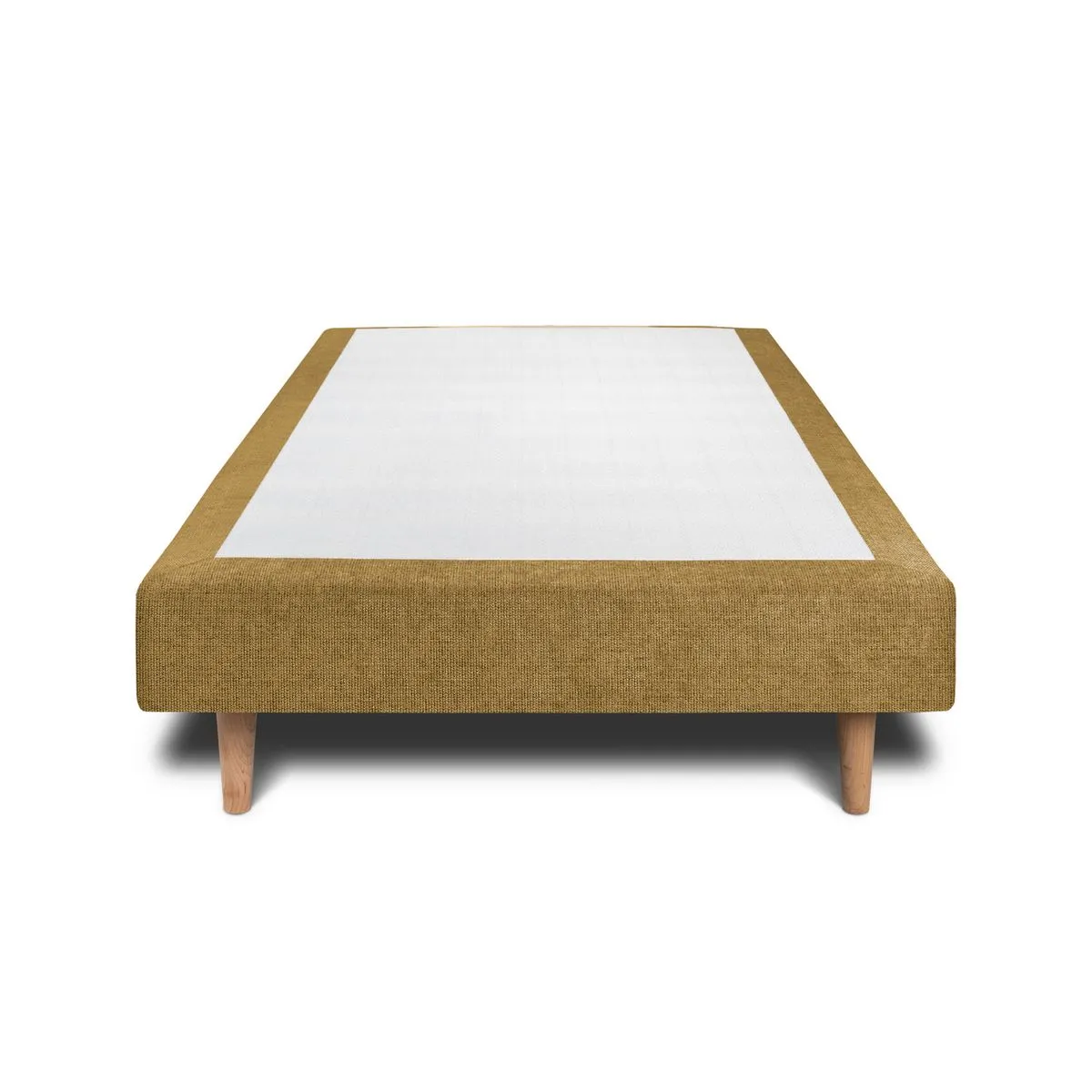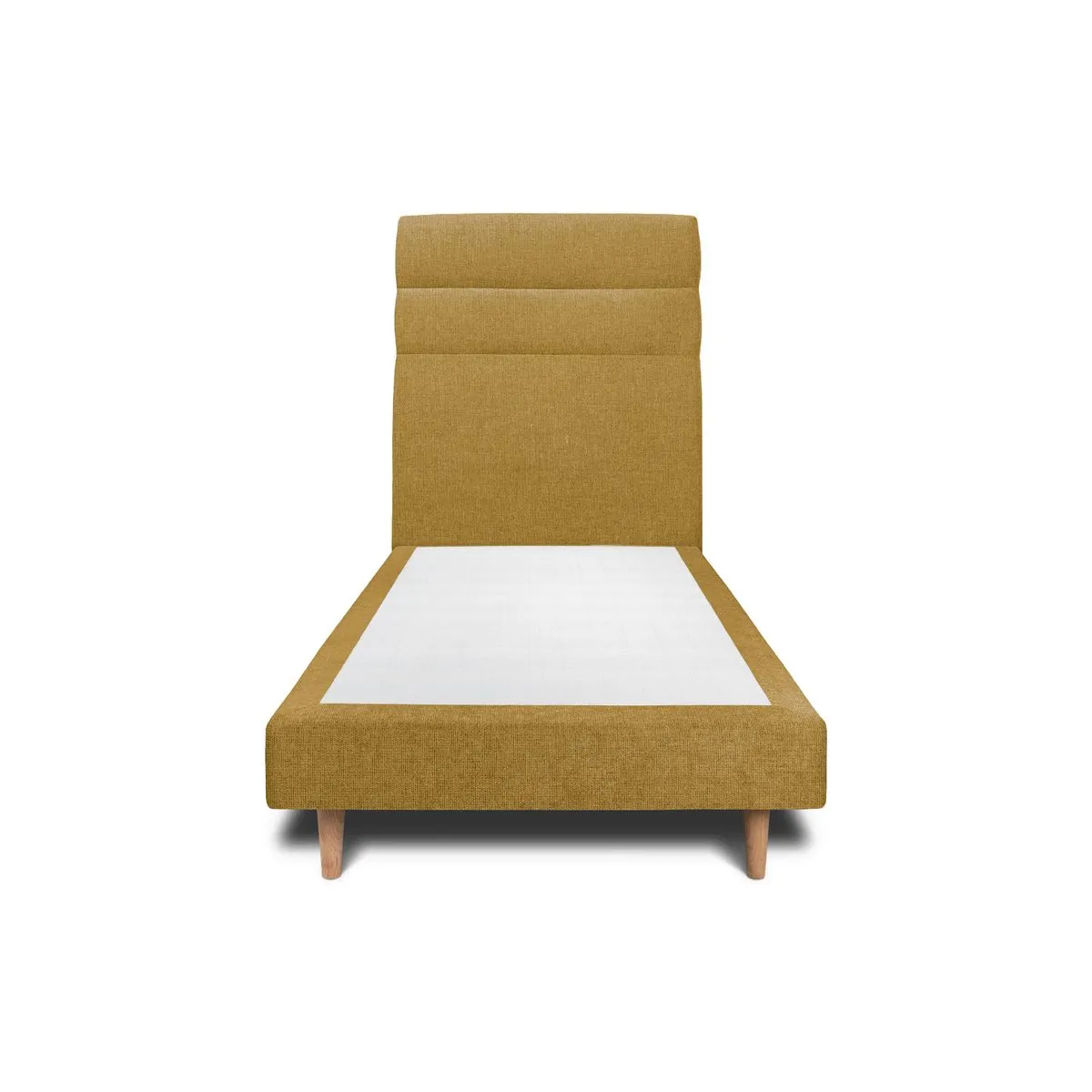 Le sommier tapissier assure un soutien homogène du matelas, favorisant une répartition régulière des points de pression et une assise stable lors des mouvements. La structure renforcée en bois massif de 14 cm contribue à la rigidité de l'ensemble, limitant les vibrations et améliorant la durabilité. La tête de lit à lignes offre un maintien confortable du dos, utile pour les moments de lecture du soir ou le réveil. L'ensemble reste discret tout en apportant un accent visuel grâce au coloris jaune, facile à coordonner avec du linge de lit uni ou à motifs.
