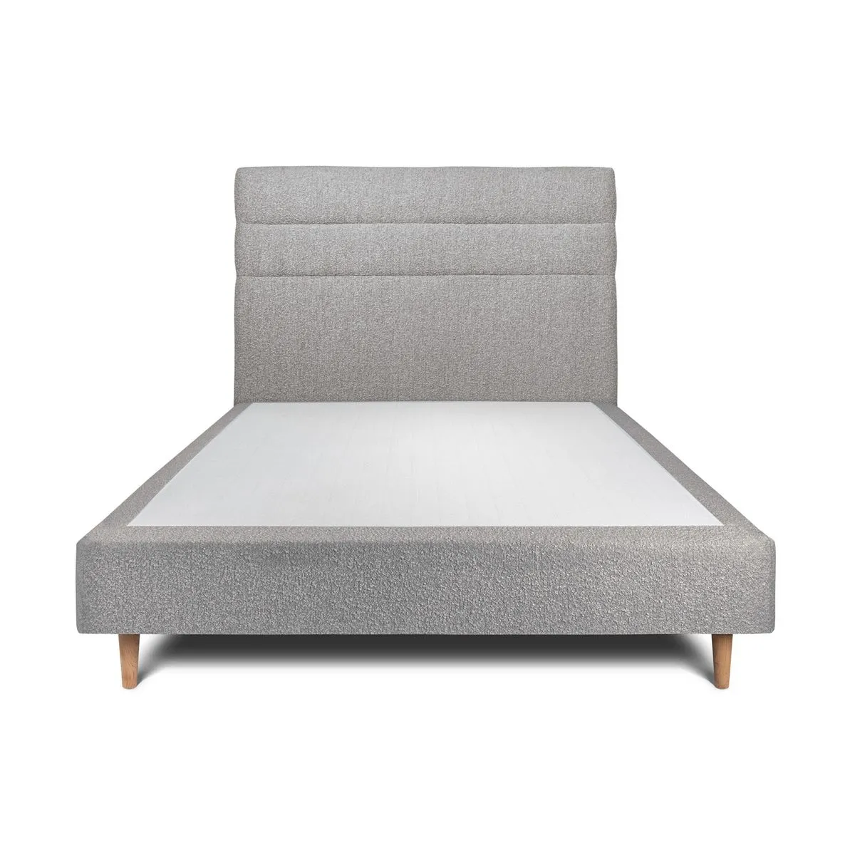 La structure en bois massif d'environ 20 cm d'épaisseur soutient le couchage 135 x 190, limitant les mouvements parasites et offrant une base fiable. Le sommier tapissier apporte une surface uniforme qui met en valeur le futur matelas, tout en participant à une répartition équilibrée du poids sur la durée. Le revêtement gris assure une cohérence visuelle avec la tête de lit à lignes, pour un ensemble discret et actuel. Chaque élément est pensé pour une utilisation régulière à deux, avec un appui stable au centre et sur les bords.