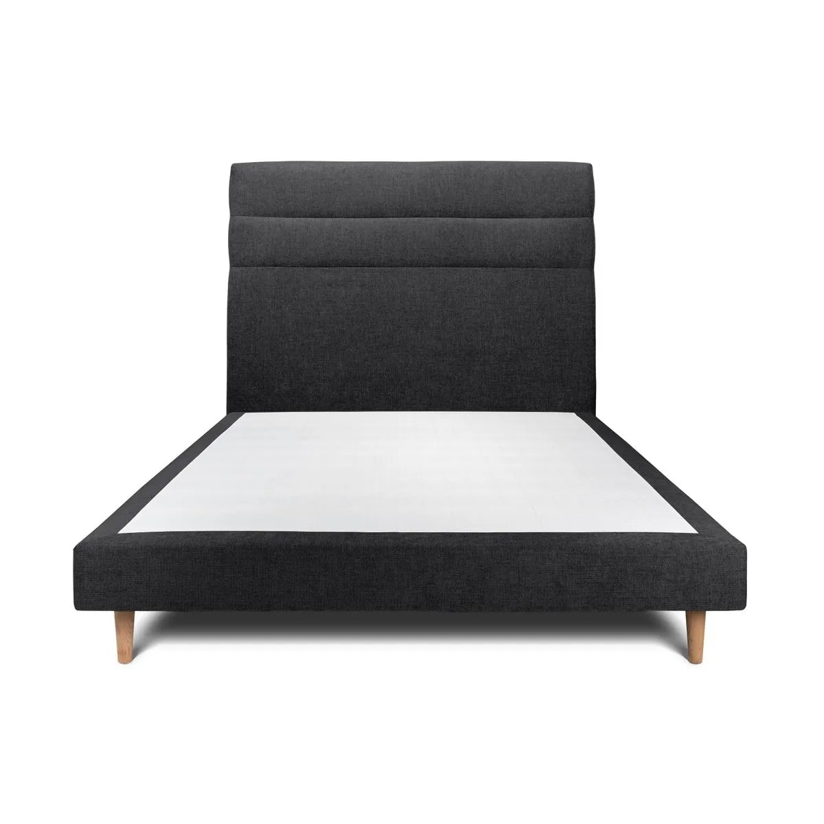 Le lit propose une tête de lit à lignes au style graphique qui structure visuellement l'espace nuit. Son revêtement noir facilite l'harmonisation avec du linge de lit contrasté ou ton sur ton. La structure renforcée en bois massif de 14 cm apporte une rigidité appréciable du cadre, utile pour conserver l'alignement dans le temps et soutenir efficacement le couchage 2 personnes. Le sommier tapissier favorise un maintien homogène du matelas, pour une surface plane et régulière.