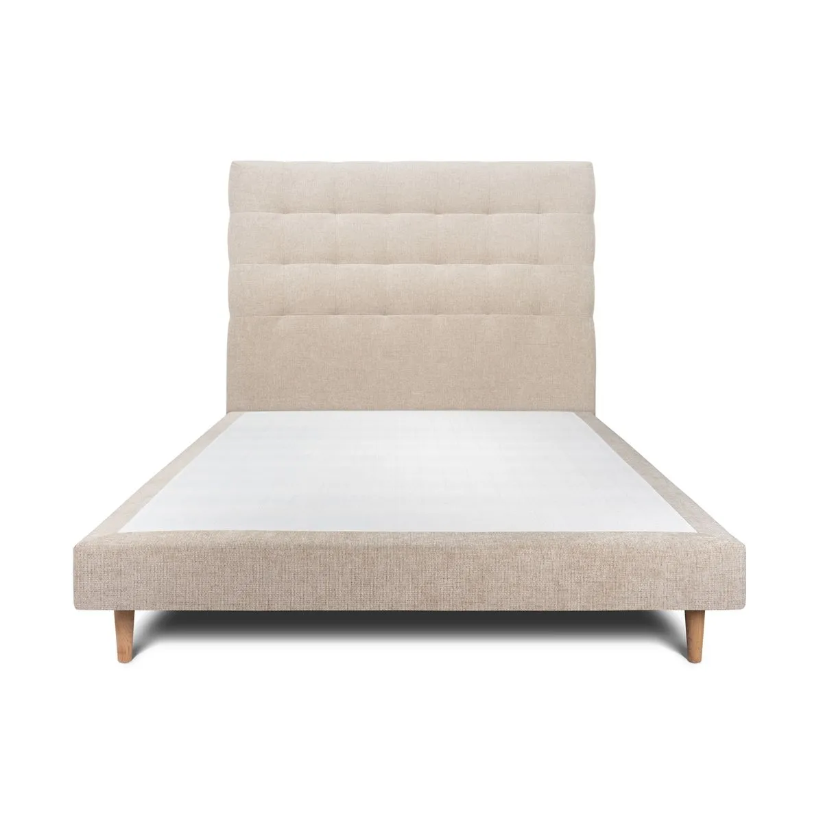 La combinaison d'un sommier tapissier robuste et d'une tête de lit capitonnée offre un maintien homogène et une assise agréable pour les moments de lecture. La structure en bois massif de 14 cm d'épaisseur apporte une réelle stabilité, limitant les mouvements parasites et améliorant la sensation de fermeté selon le matelas choisi. Le coloris beige crée une base neutre qui facilite l'harmonisation avec le linge de lit et les accessoires déjà présents.