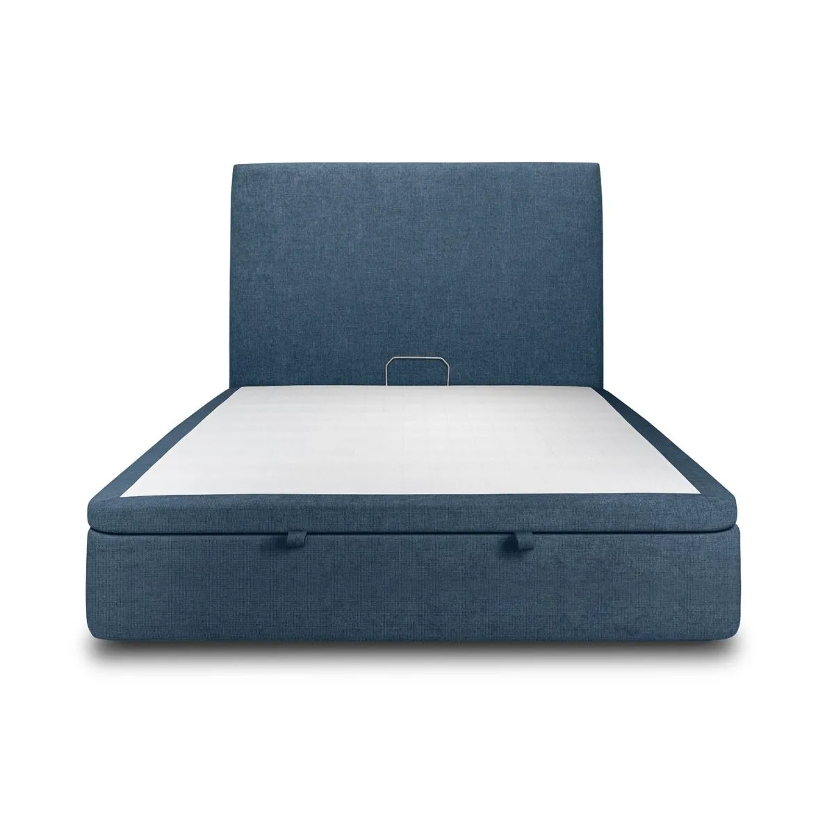 Le mécanisme coffre permet de ranger couettes, oreillers ou linge de lit dans un compartiment dédié, avec une manipulation fluide qui facilite l'ouverture au quotidien. La structure en acier renforcée améliore la rigidité et la durabilité, limitant les mouvements parasites et favorisant une sensation de stabilité. La tête de lit tapissier apporte un appui confortable pour la lecture et protège le mur des frottements. Le design bleu convient aux ambiances contemporaines comme classiques, sans surcharge visuelle.