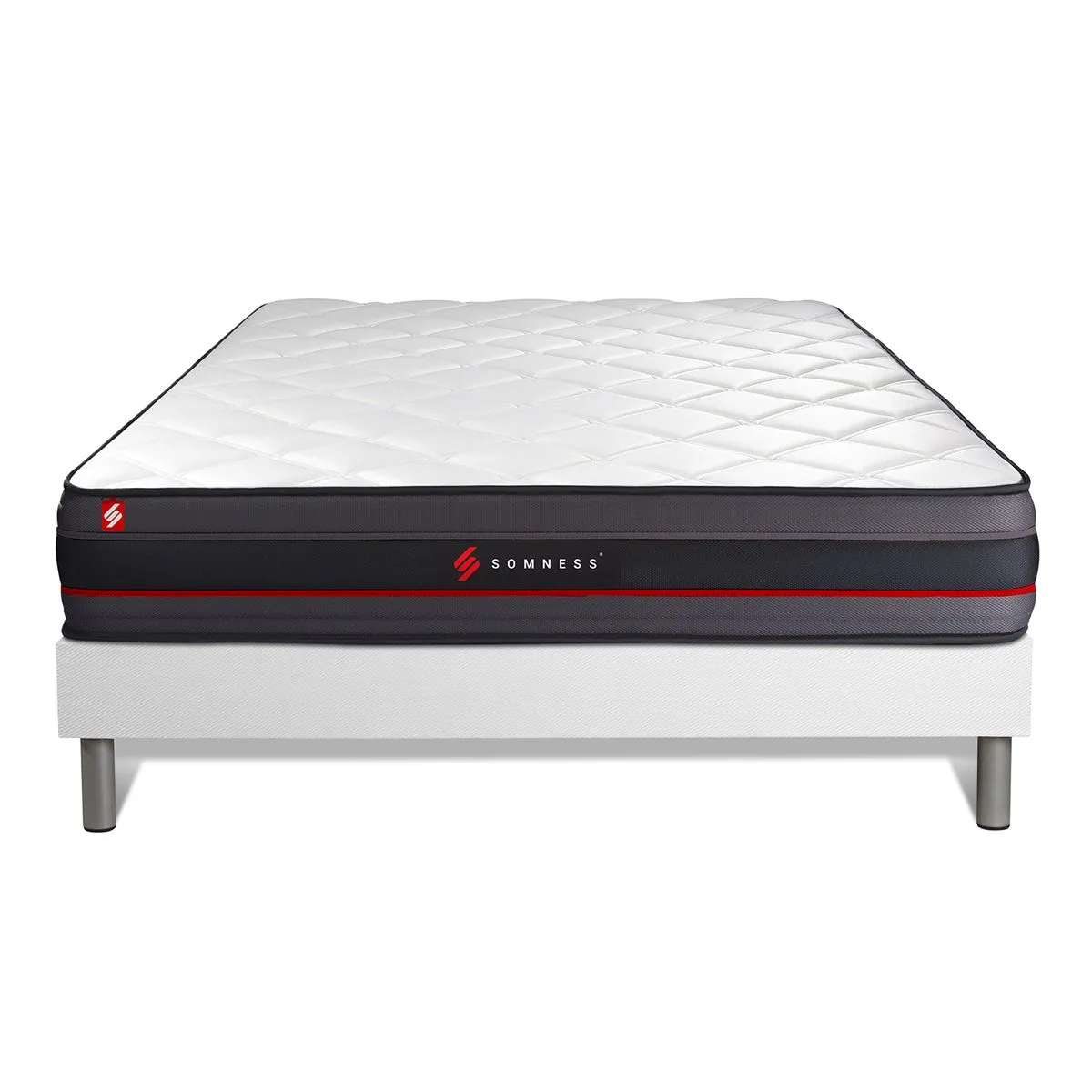 Commentaire vendeur : - Type de matelas : Mémoire de forme- Epaisseur : 24 cm- Confort : ferme- Accueil : Enveloppant avec 2,5 cm de mousse polyuréthane à mémoire de forme + soft- Soutien : 16cm de mousse polyuréthane- Indépendance de couchage : Excellente- Coutil 100% polyester microperforé ultra-respirable- Plate-Bande en tissu 3D micro-perforé 100% Polyester pour optimiser l'aération du matelas- Face de couchage : Réversible- Densité : 55 kg/m3- Certification : Oeko-Tex- Sommier tapissier- Multi 12 lattes en peuplier massif- Structure et traverses de renfort en peuplier massif- Garnissage fibres 100% polyester 120G/M2- Tissu Maille 100% polyester 260G/M2- Toile de fond anti-poussières 100% polyester- Hauteur 14cm + Pieds acier 15cm