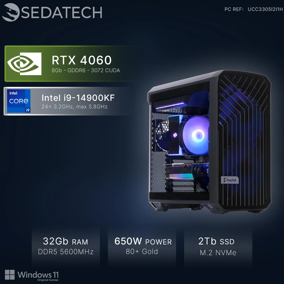 Sedatech Workstation Compact ATX • Intel i9-14900KF • RTX4060 • 32Go DDR5 • 2To SSD M.2 • Windows 11 |