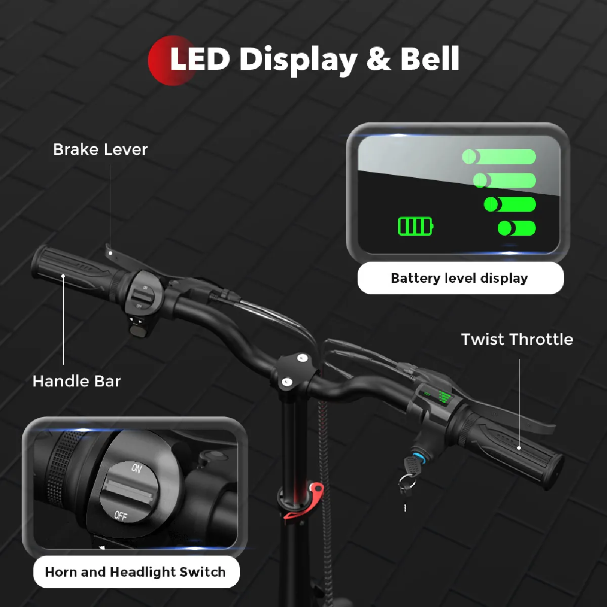 Le système de frein à disque et de freinage électrique est très réactif, économe en énergie et améliore votre sécurité de conduite, offrant un effet de freinage fiable par temps de pluie ou de soleil.