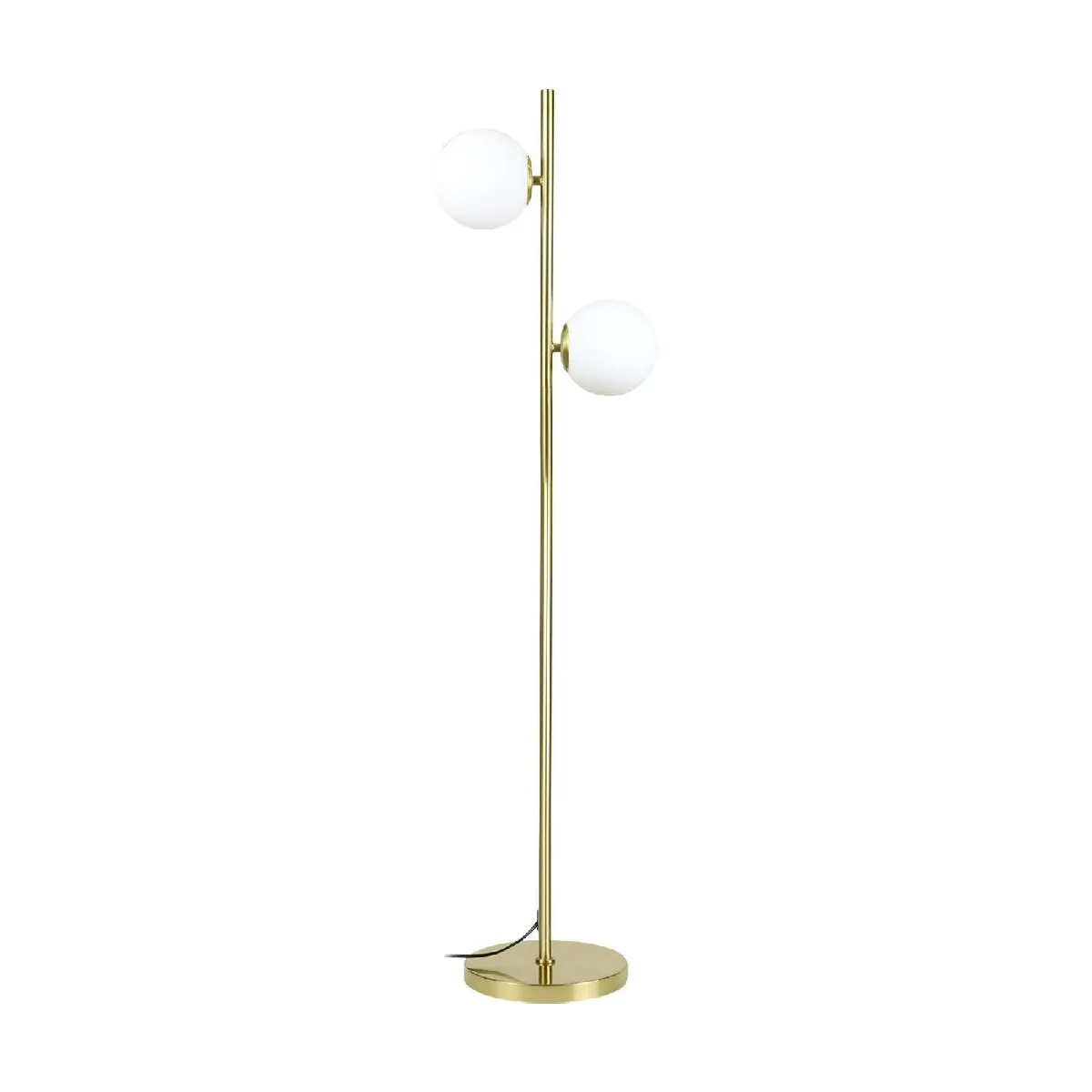 Allume verreLe lampadaire en métal doré est équipé de deux abat-jour en verre blanc qui s'harmonisent parfaitement dans un style moderne et minimaliste. Ce lampadaire n'est pas seulement fonctionnel, il constitue également un ajout décoratif à votre intérieur.