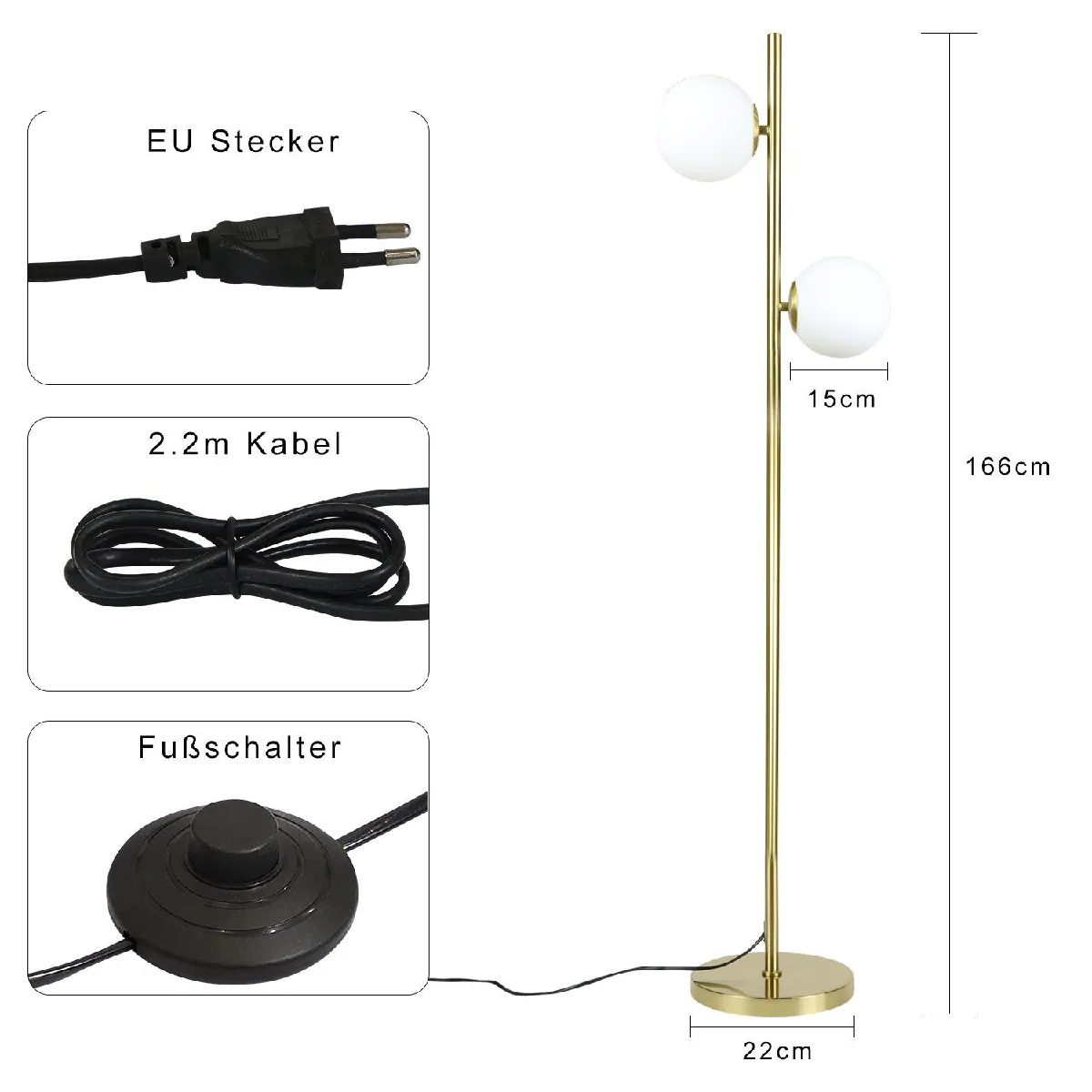Un design élégant et moderneNotre lampadaire moderne doré avec douille E27 convient aux décors contemporains et s'adapte à tous les styles d'intérieur. L'abat-jour en verre confère un look grandiose et moderne à votre maison, bureau, salon, chambre à coucher, bureau et plus encore. Le socle rond assure la stabilité et une bonne assise sur le sol.