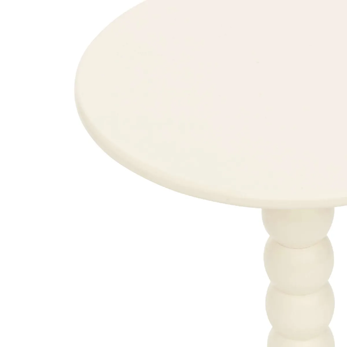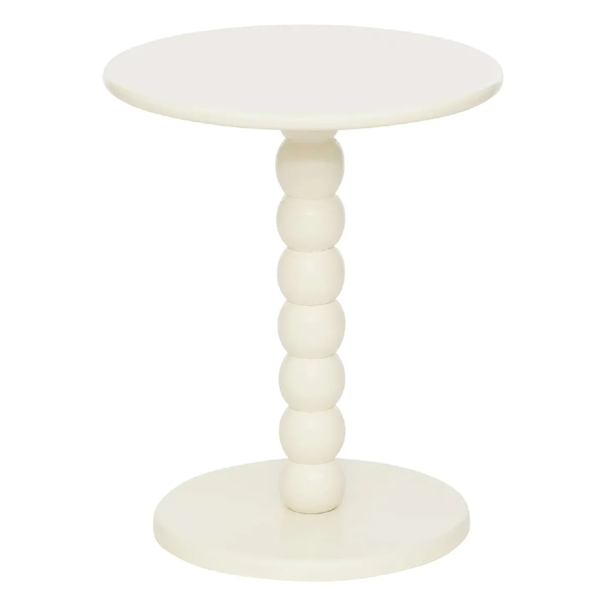 Commentaire vendeur : Ajoutez une touche originale et contemporaine à votre intérieur avec cette table d'appoint ronde au design unique. Sa structure se distingue par un pied central composé de plusieurs sphères empilées. La table de couleur blanche, est une pièce discrète mais stylée, idéale pour compléter un salon, une chambre ou un coin lecture. Grâce à sa forme compacte, elle se glisse facilement dans des espaces restreints tout en conservant une grande fonctionnalité.FICHE TECHNIQUE- Table à café- Matière : Bois - MDF et pin- Couleur : Ivoire- A monter soi-mêmeCARACTERISTIQUES TECHNIQUES- Dimensions : Diamètre 38 cm x Hauteur 46,5 cm- Poids : 2,9 kg