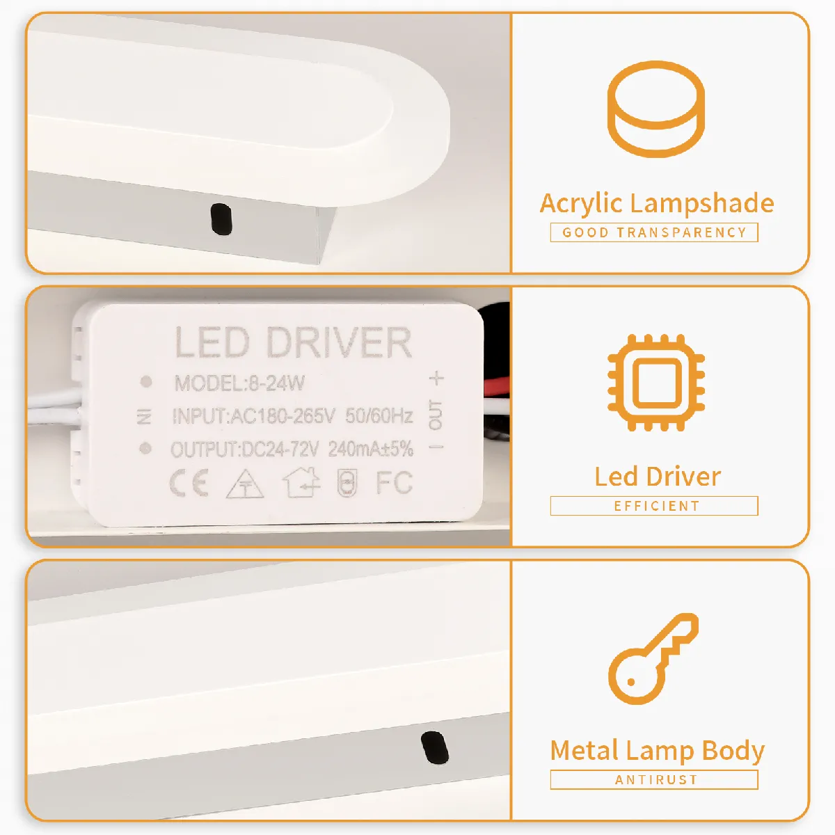 Aucune étape fastidieuse requise, câblée et montée en surface, fixée avec des vis, l'installation de l'applique murale LED n'est pas difficile, mais il est recommandé de l'installer par un électricien agréé.