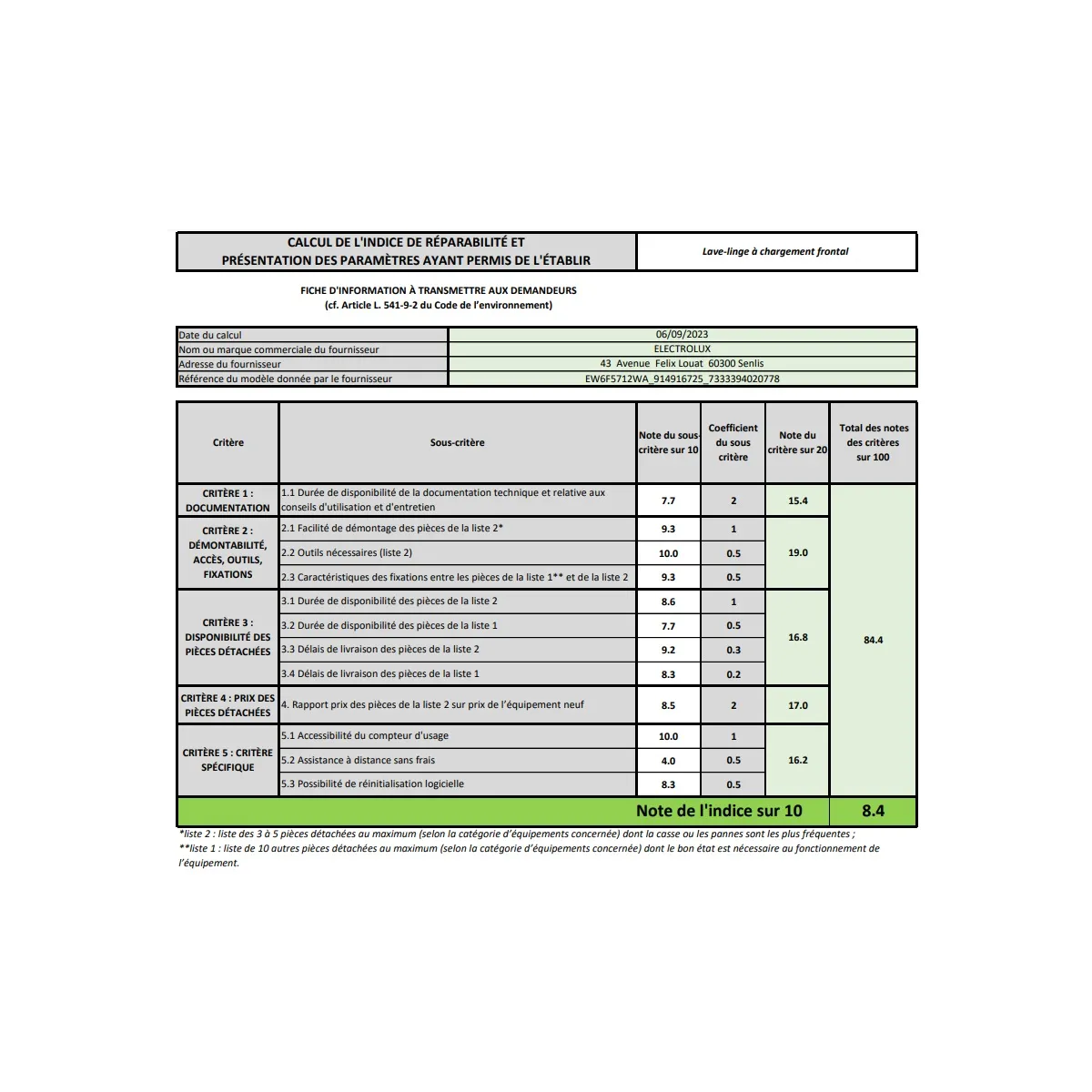 Indice réparabilité (sur 10) |