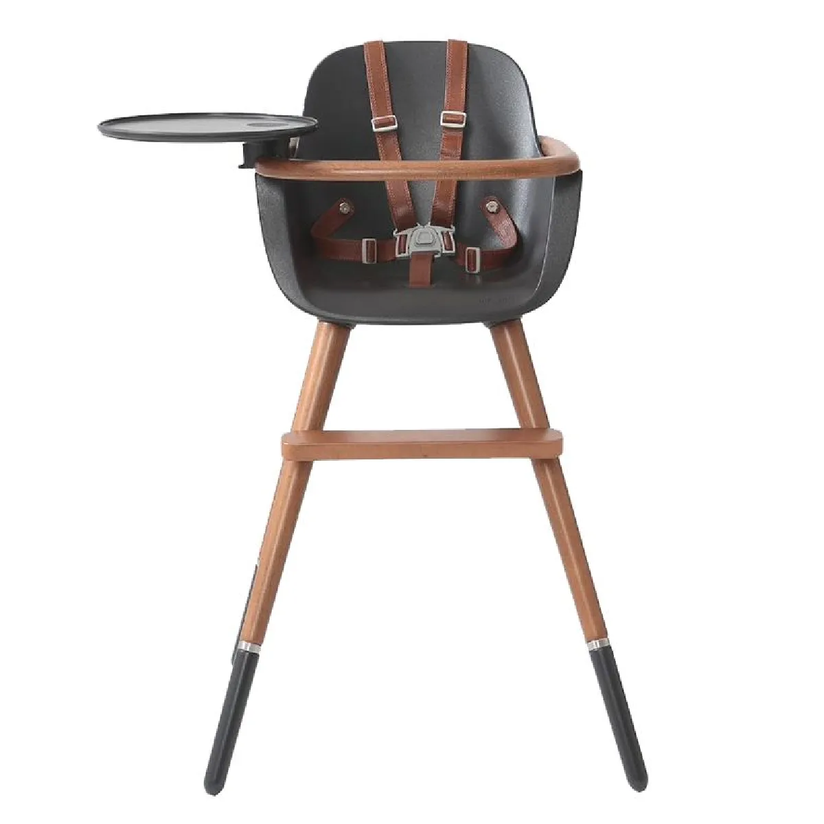 Chaise haute bébé - modèle Ovo Luxe - coloris gris et acajou