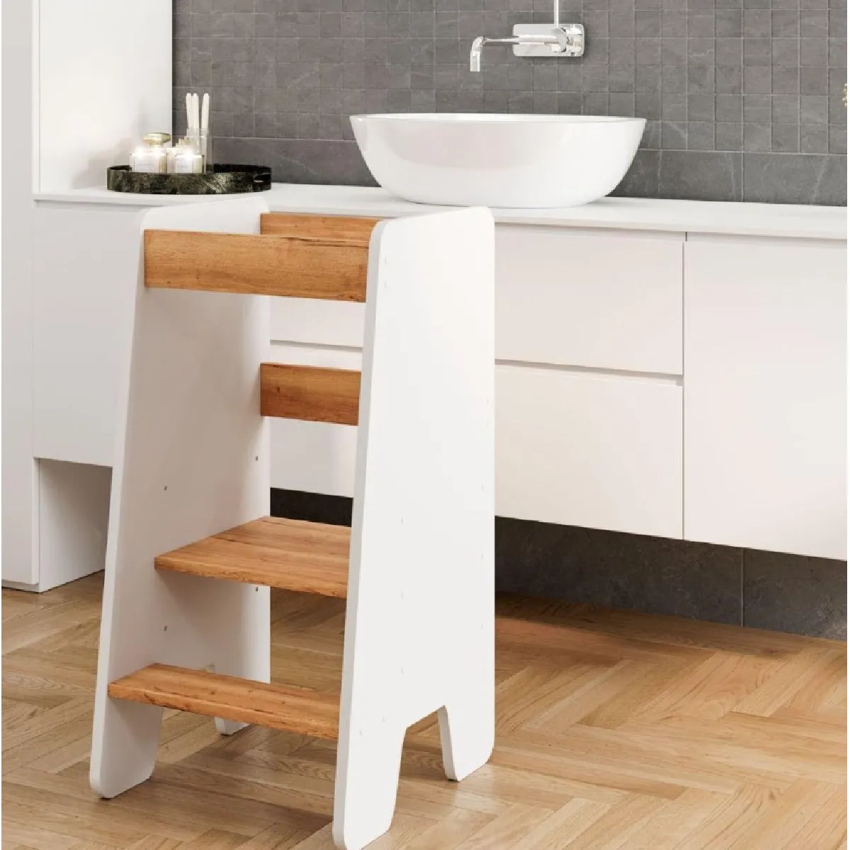 Permet aux enfants de participer aux tâches du quotidien avec une plateforme ergonomique qui met le plan de travail à portée. Cette tour d'apprentissage favorise la sécurité et l'autonomie lors des activités en cuisine ou à la salle de bain. Grâce à une structure pensée pour la stabilité et une surface facile d'entretien, elle accompagne les moments d'exploration sans complexité. Les plus jeunes peuvent se brosser les dents, aider à mélanger ou simplement observer, tout en restant à la bonne hauteur et bien encadrés. L'ensemble crée des occasions concrètes de coopération et soutient l'apprentissage des gestes utiles, dans un environnement adapté aux besoins de l'enfant.