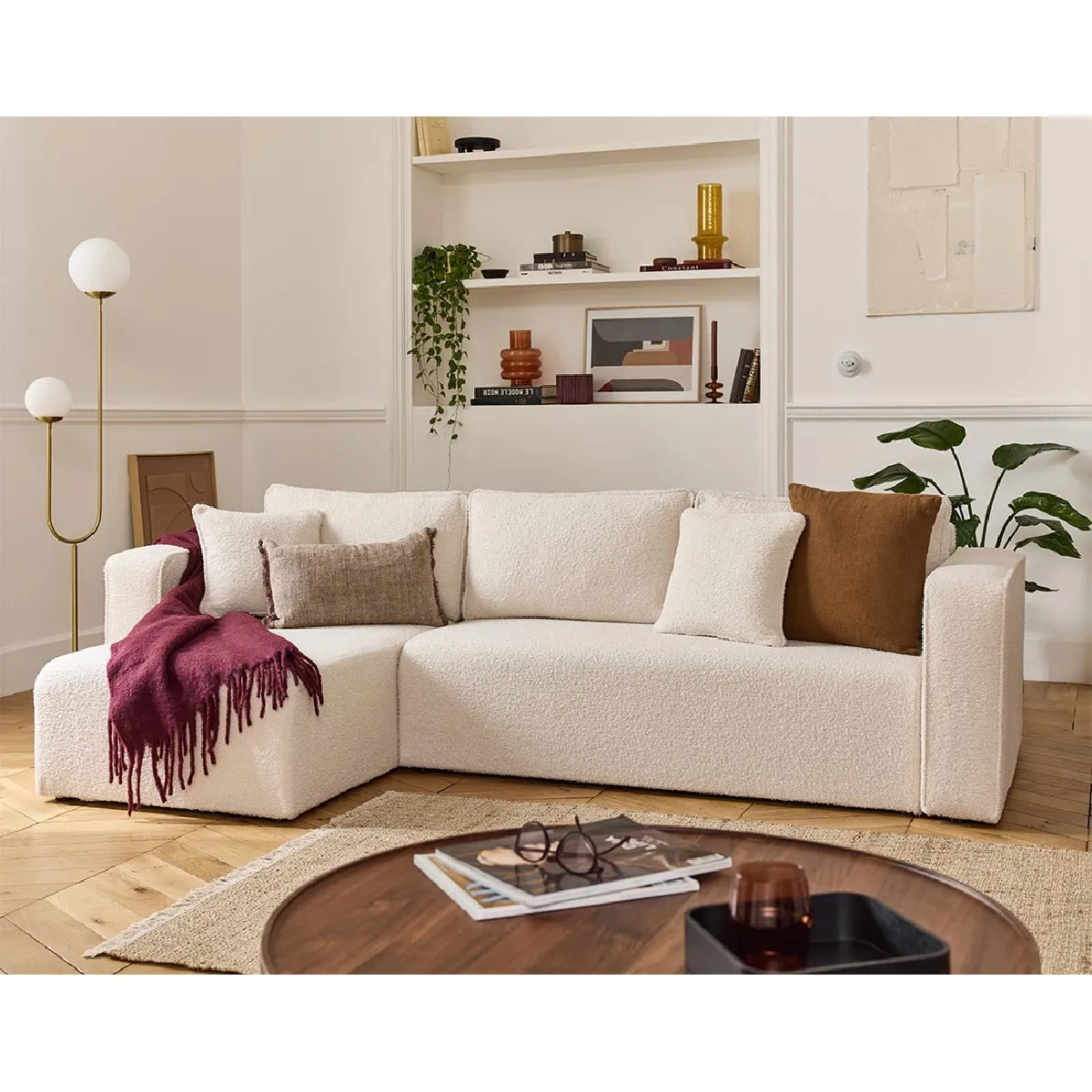 Topaze : Housse en tissu bouclette pour canapé d'angle réversible 4 places