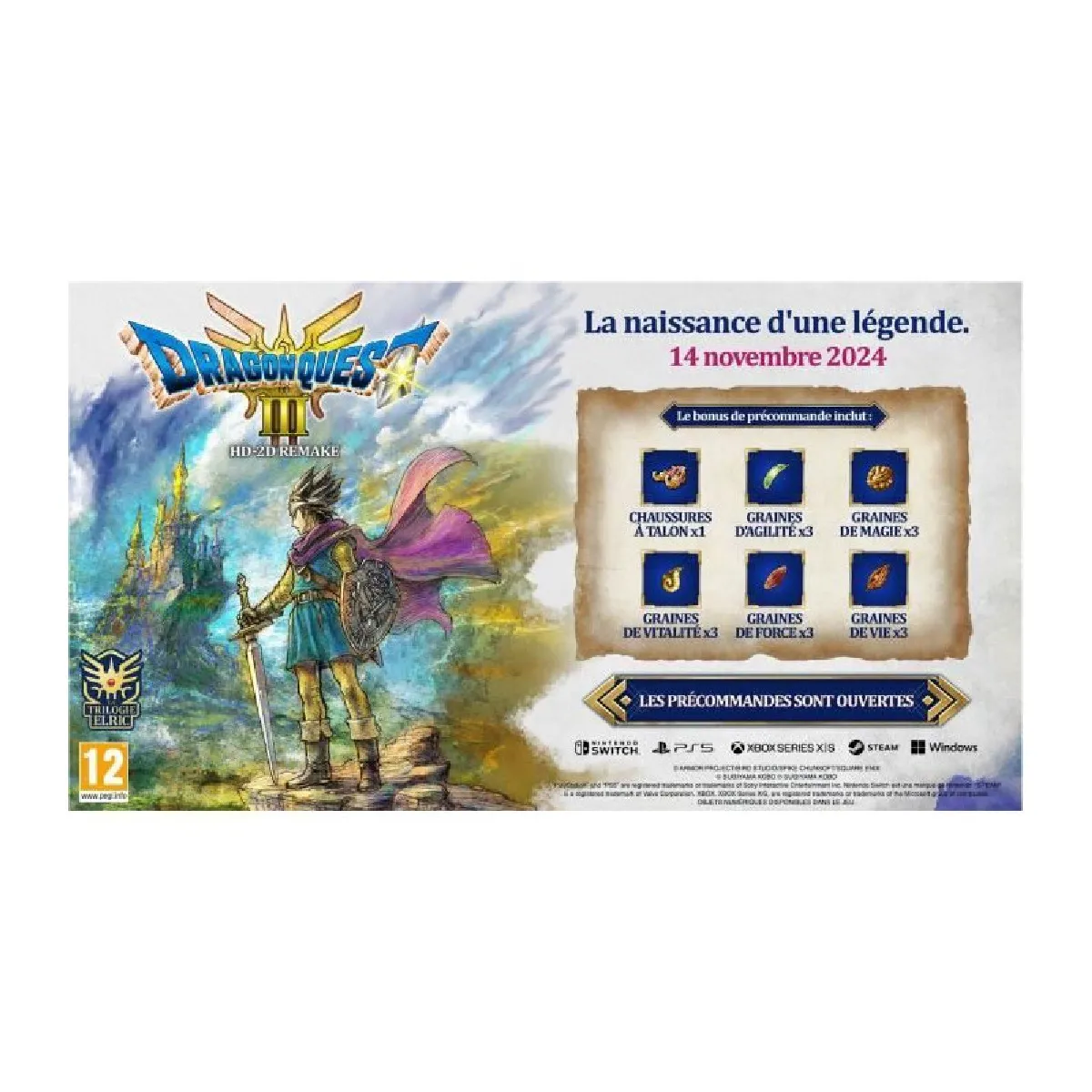 DRAGON QUEST III HD 2D REMAKE est une magnifique recreation du chef d uvre culte et le point de depart de la trilogie d Elric les trois premiers titres de la branche principale de la franchise DRAGON QUEST. Avec des graphismes en HD 2D pleins de vie des fonctionnalites inedites et modernisees et une histoire retravaillee le jeu invite les joueuses et les joueurs dans une aventure fantastique pour sauver le monde des tenebres. Plusieurs annees auparavant le grand heros Ortega fit ses adieux a sa femme et son enfant pour accomplir sa mission d aneantir l Archidemon Baramos.