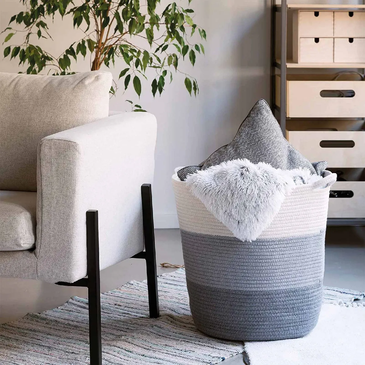 - Un panier extra large (35 x 45 x 40 cm), parfait pour lancer des jouets, du linge, des serviettes, des couvertures, des coussins, des magazines, des fournitures d'art/d'artisanat et plus encore. Gardez-le dans la chambre des enfants, la salle familiale ou toute pièce de la maison qui pourrait utiliser un espace de rangement supplémentaire : s'adapte sur une étagère de placard, une étagère ou un bureau.